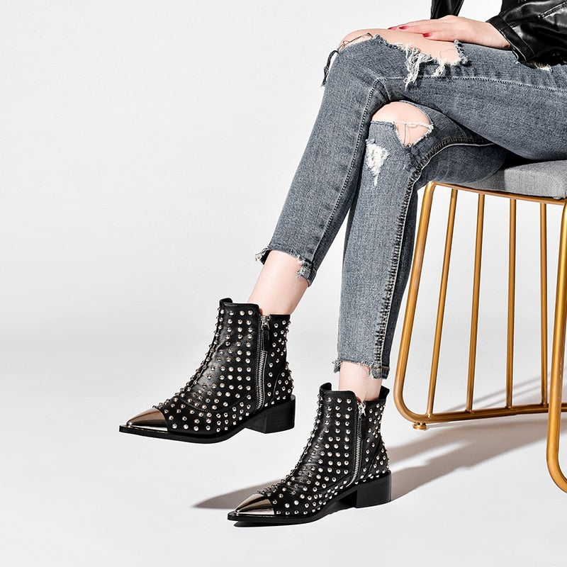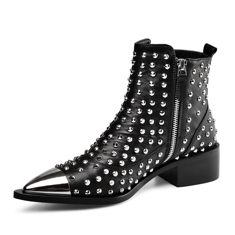 <transcy>Botines con cremallera lateral de remache de cuero genuino</transcy>