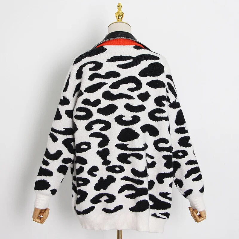 This jacket is crafted from faux leather, featuring spliced details, two pockets, and a zipper front closure. Perfect for wearing off the shoulder or zipped up for a more classic look.