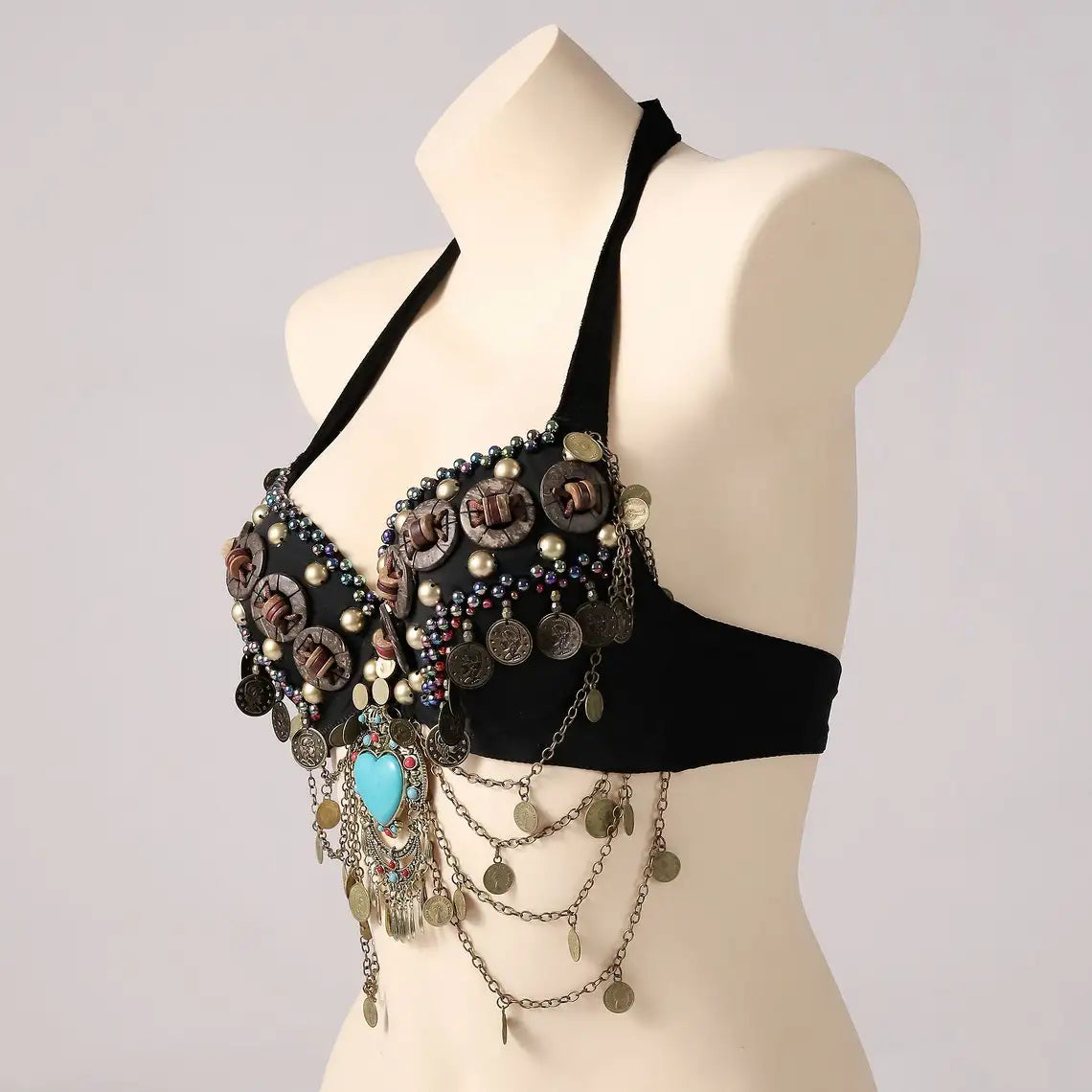 Be the shining warrior with our Glittering Body Jewelry! Made with soft and stretchy spandex and cotton, our bra top is a perfect blend of comfort and style. Adorned with beads and copper, this body jewelry adds a touch of elegance to your outfit. Unleash your inner warrior and look stunning with our unique design!