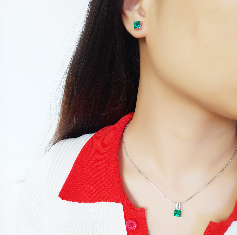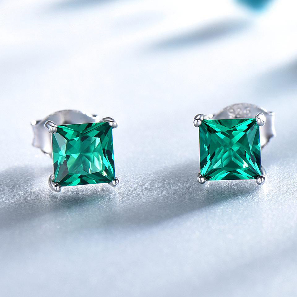 <transcy>Pendientes de botón de mujer de piedras preciosas esmeralda de plata esterlina 925 auténticos coreanos</transcy>