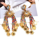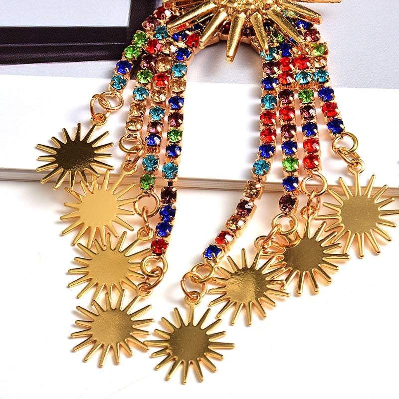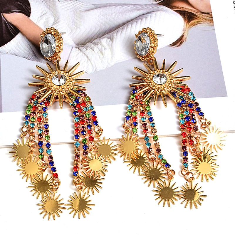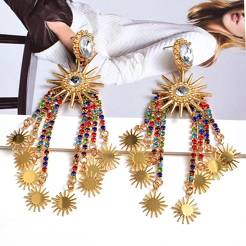 Pendientes colgantes de aleación de metal en forma de estrella con diamantes de imitación de colores