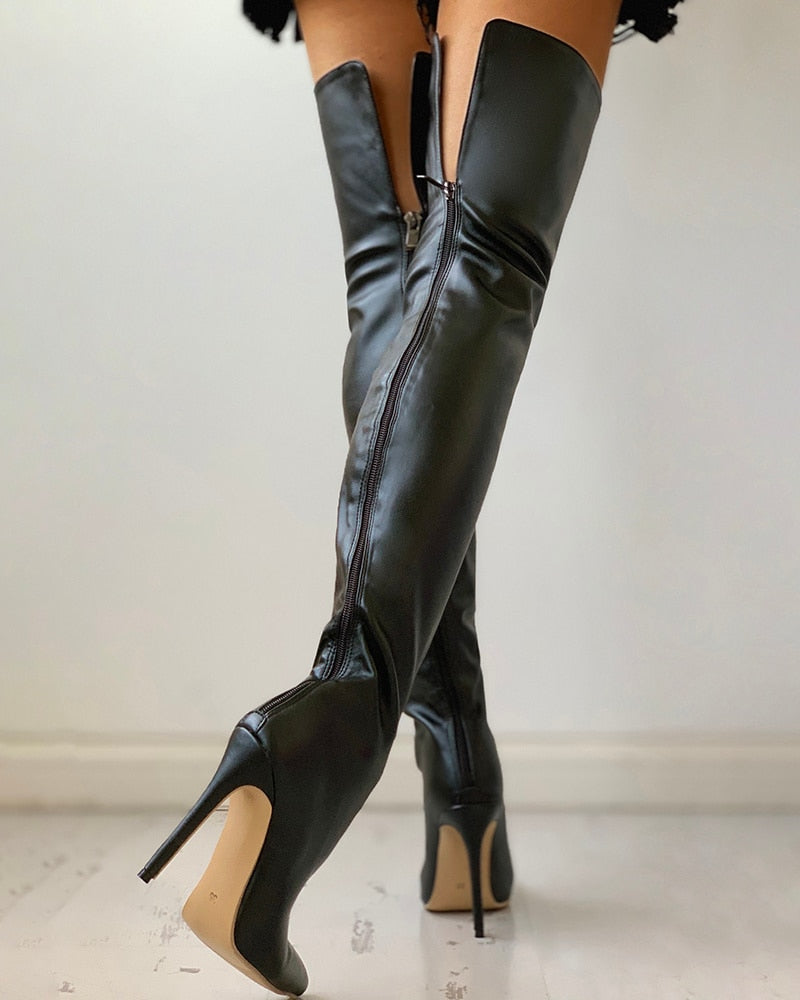 The perfect way to add a little edge to your everyday outfits, these over-the-knee boots are perfect for any occasion. A sleek and stylish style that is sure to become a go-to option for any wardrobe. This style has a dainty and feminine appearance that is sure to get noticed. A pointed toe adds a stylish touch to this essential boot.
