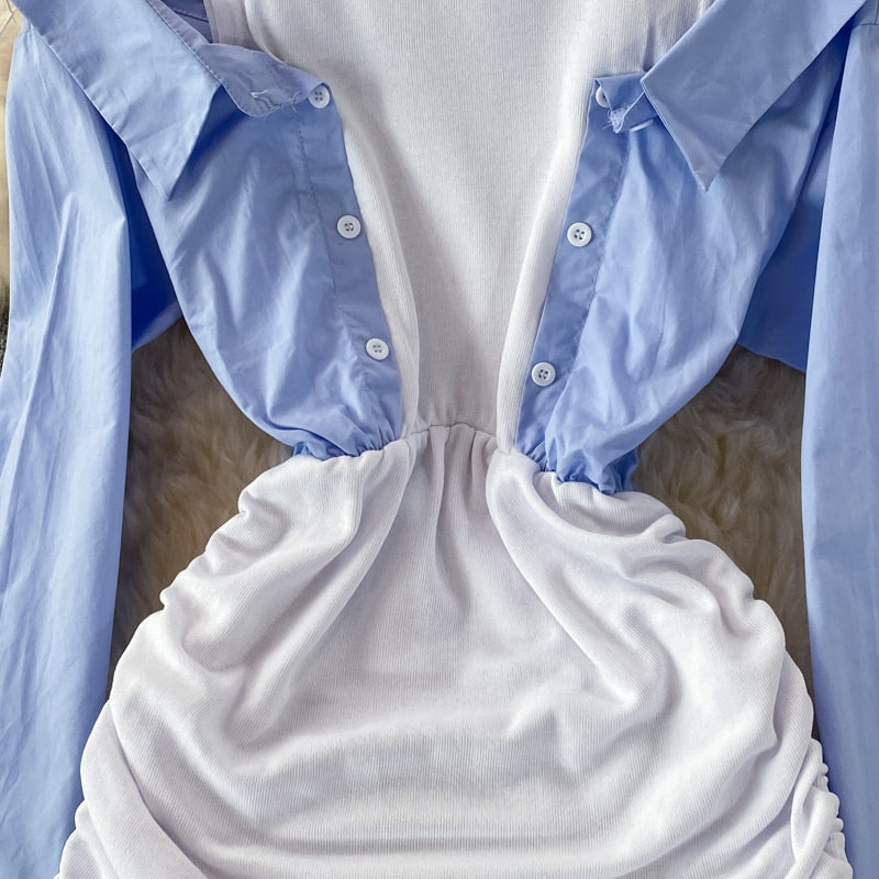 Cuteness Overload! This mini dress has a unique shirt combination. It has drawstring details and an elastic waist.