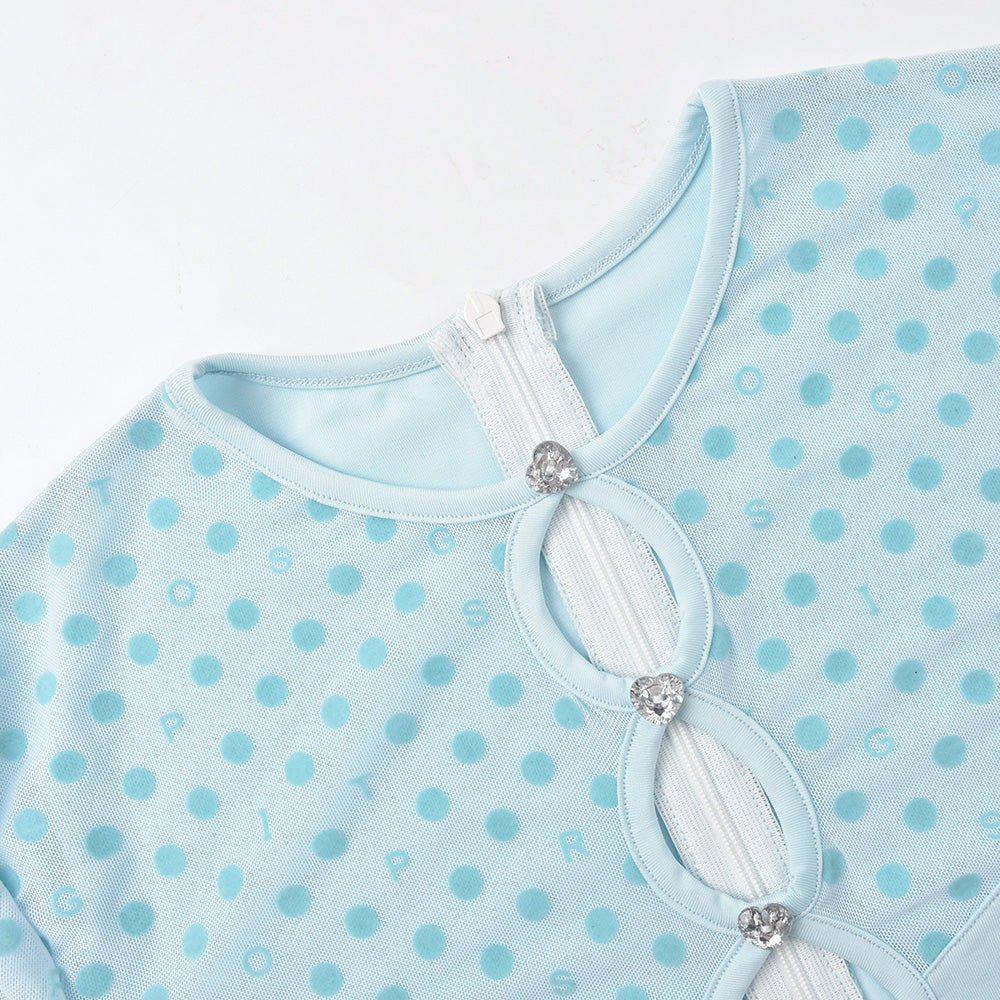 This sleeveless romper features a sky blue color and a hollow-out design. The polyester material is lightweight and comfortable. The long sleeves provide coverage and a light breeze will keep you cool.