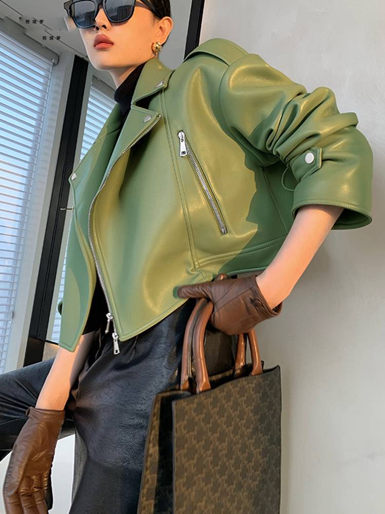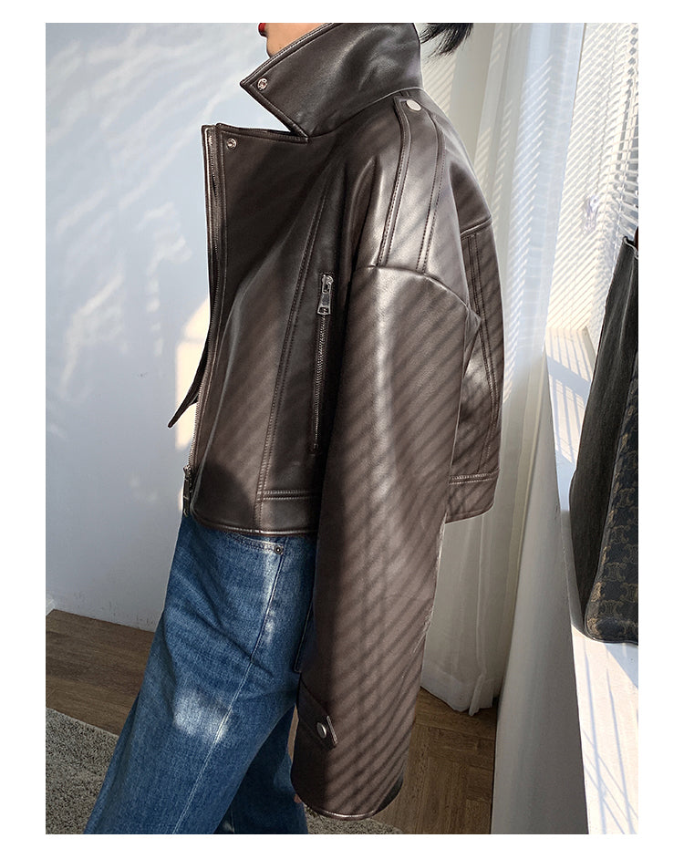 This trendy leather jacket can be paired with jeans or chinos for a casual yet stylish look that's sure to leave a lasting impression. Viewed from the front, it has a stylish notch lapel collar and a zip closure. This simple design gives a smart and casual look.