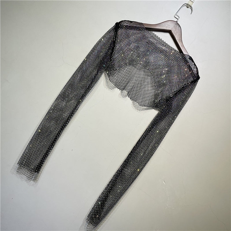 This is a great crop top with a sleek, stretchy fabric that fits perfectly. It has a blingy decoration making it look more unique.