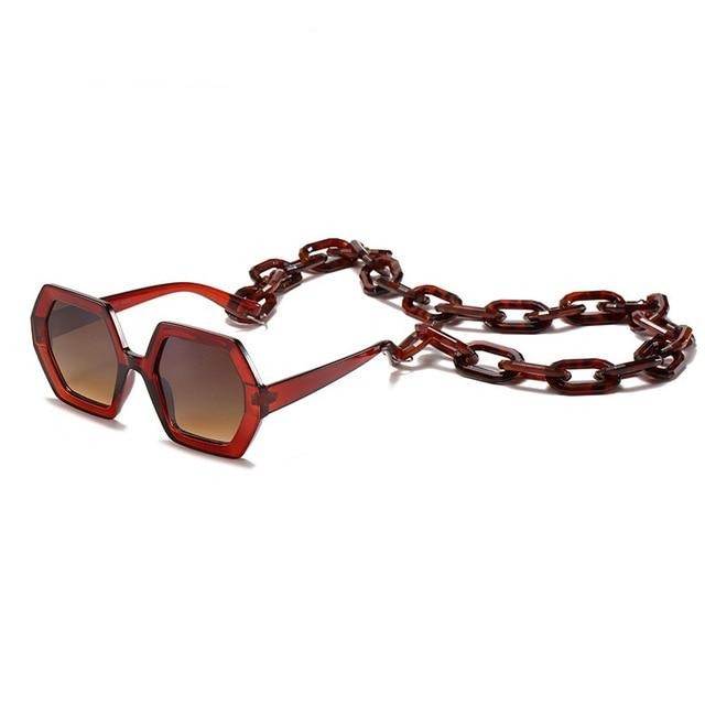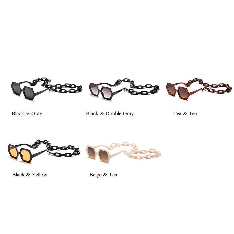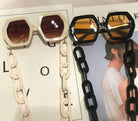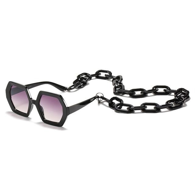 Gafas de sol con montura de plástico con decoración de cadena y lente UV400
