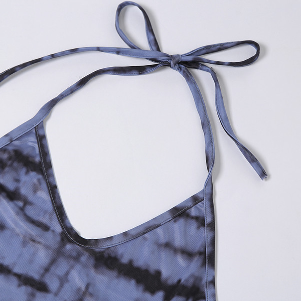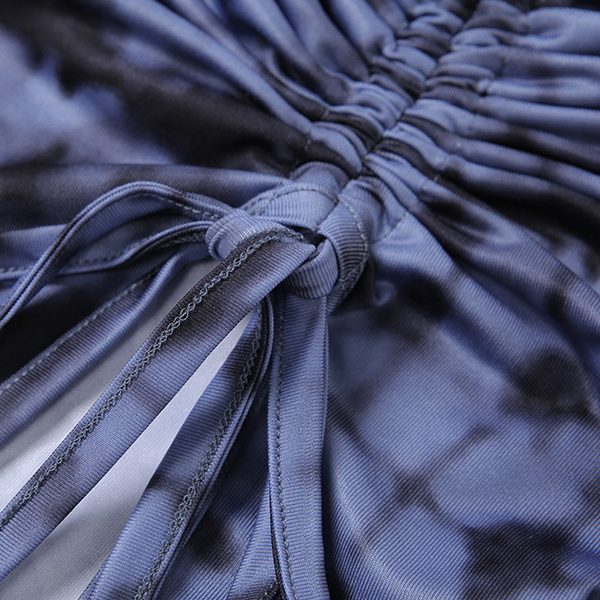 Vestido maxi de spandex de poliéster sin mangas con estampado Tie-Dye con abertura larga y fruncido
