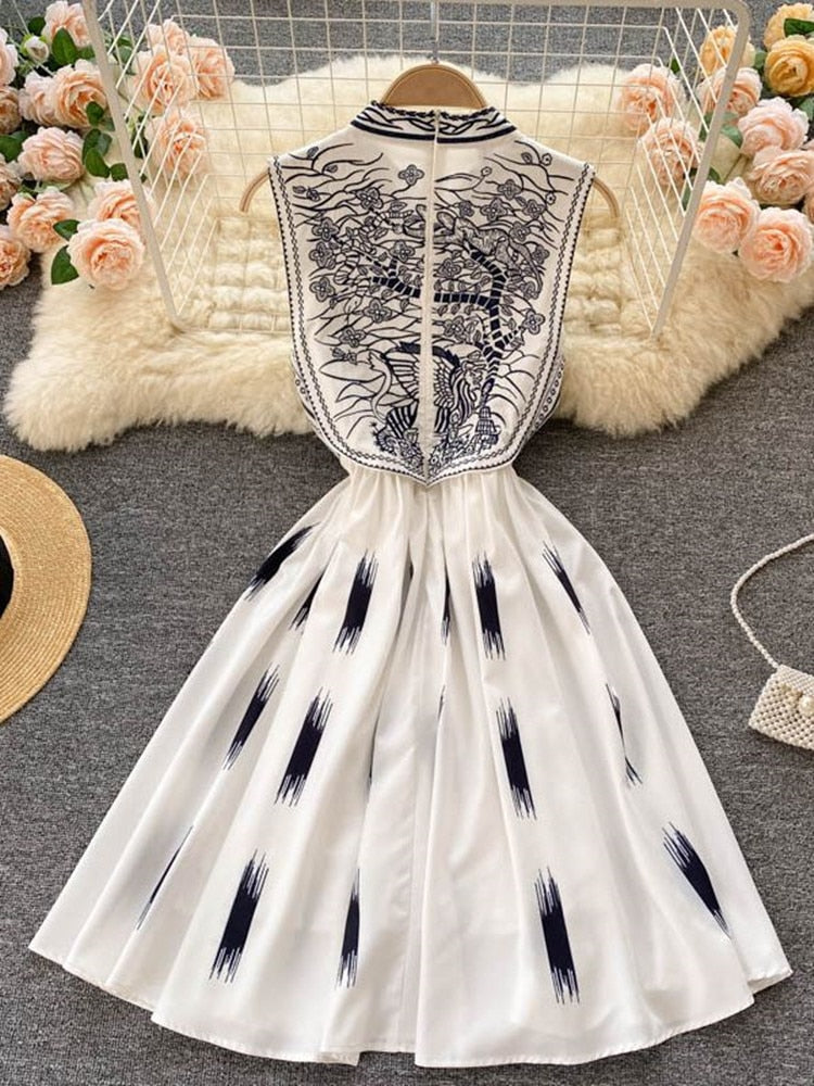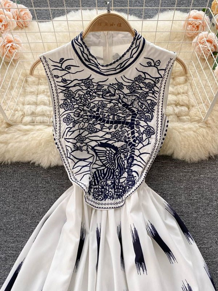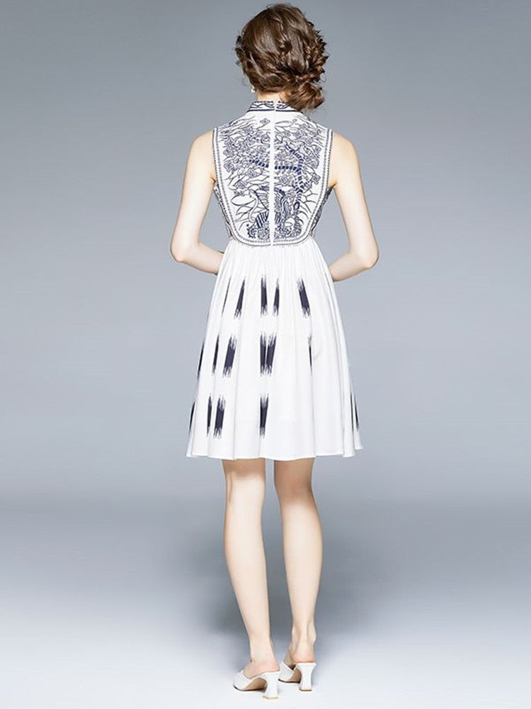 This sleeveless, cotton, floral embroidered, the o-neck mini dress is perfect for any occasion. The design is versatile and can be worn both day and night.