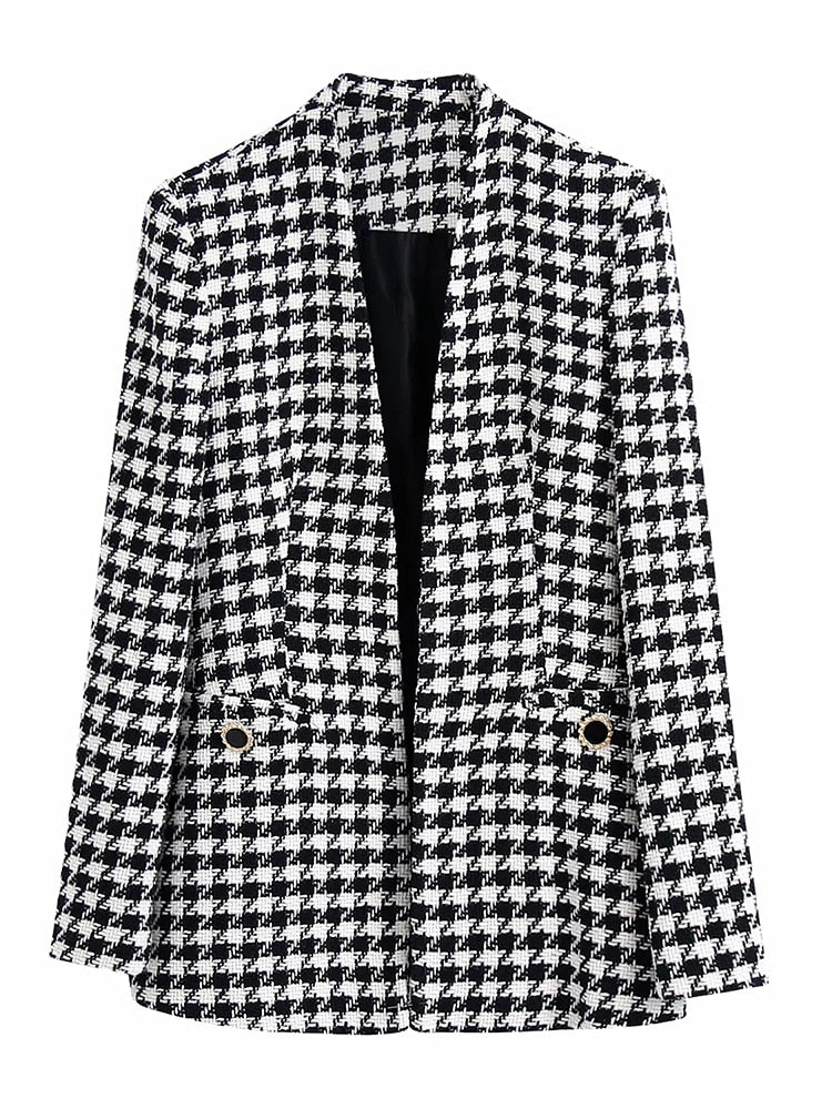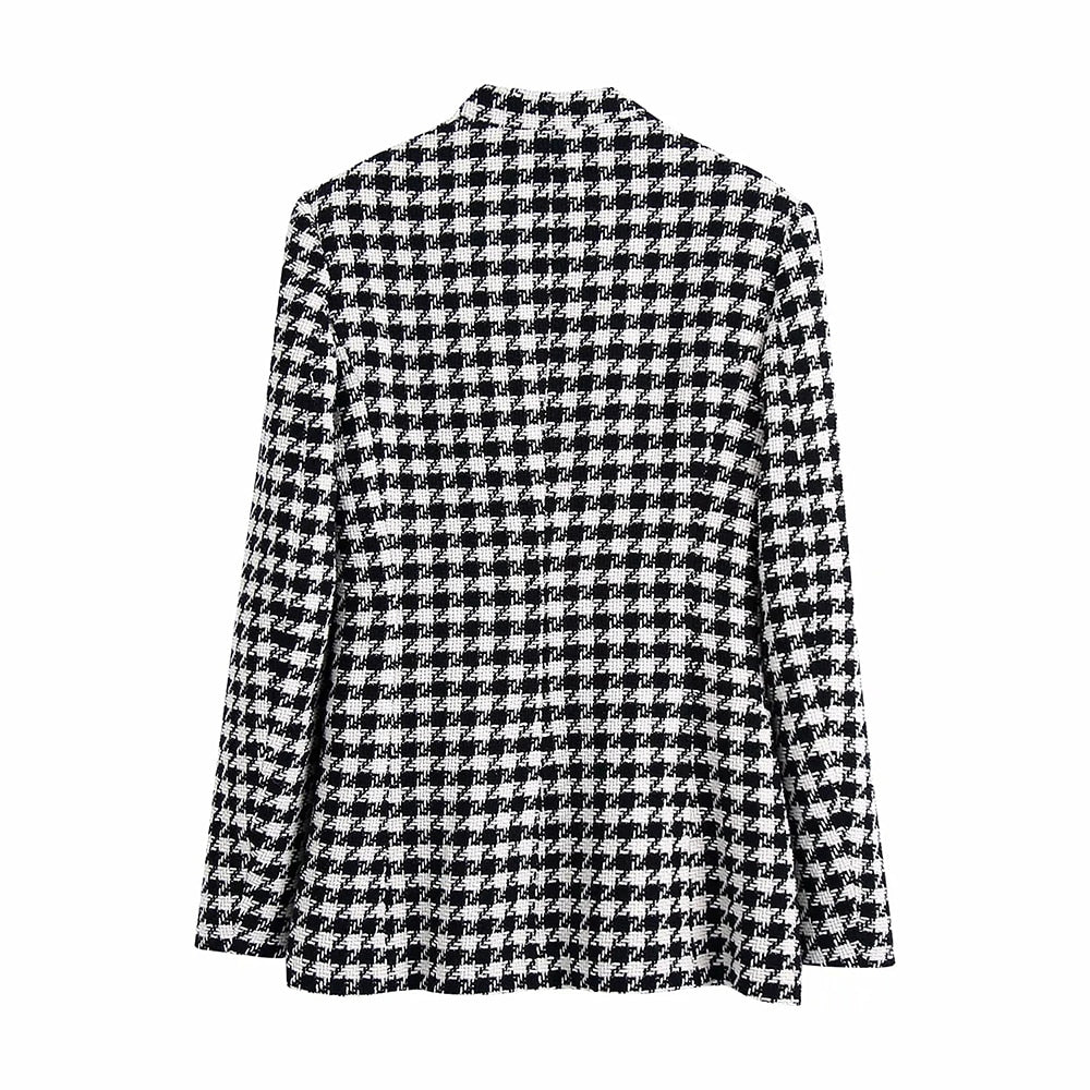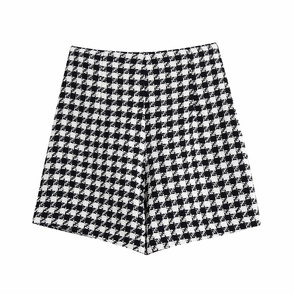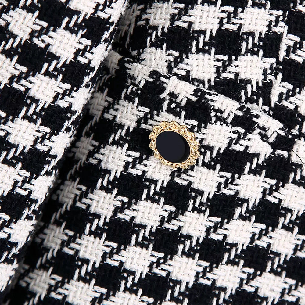 The ultimate look for anyone who loves a timeless classic. This set features a full black and white houndstooth pattern. The blazer paired with high-waisted shorts gives it a modern twist and makes it casually elegant.
