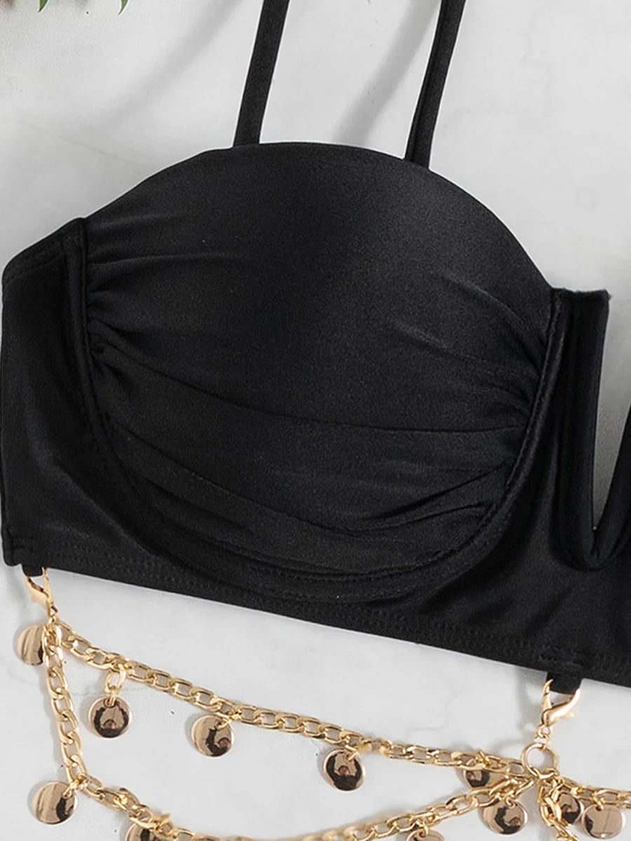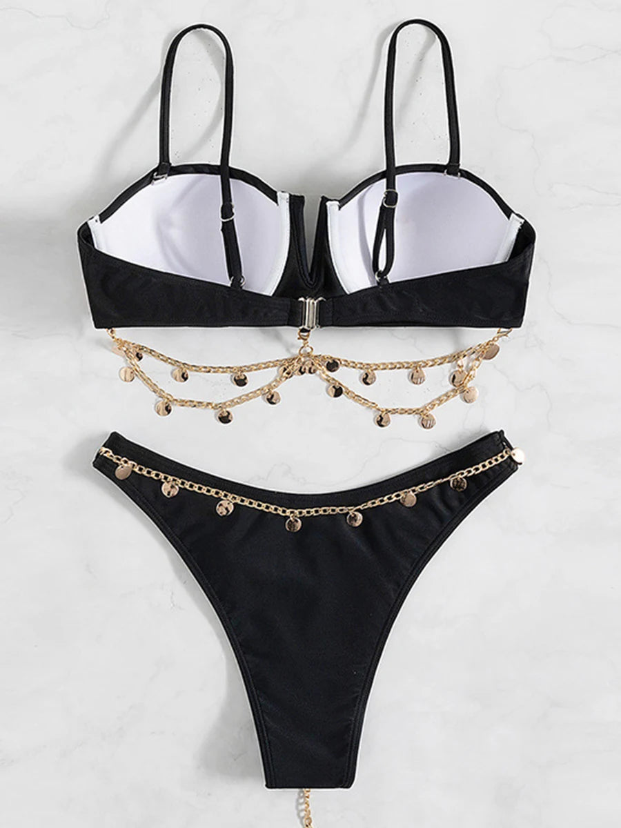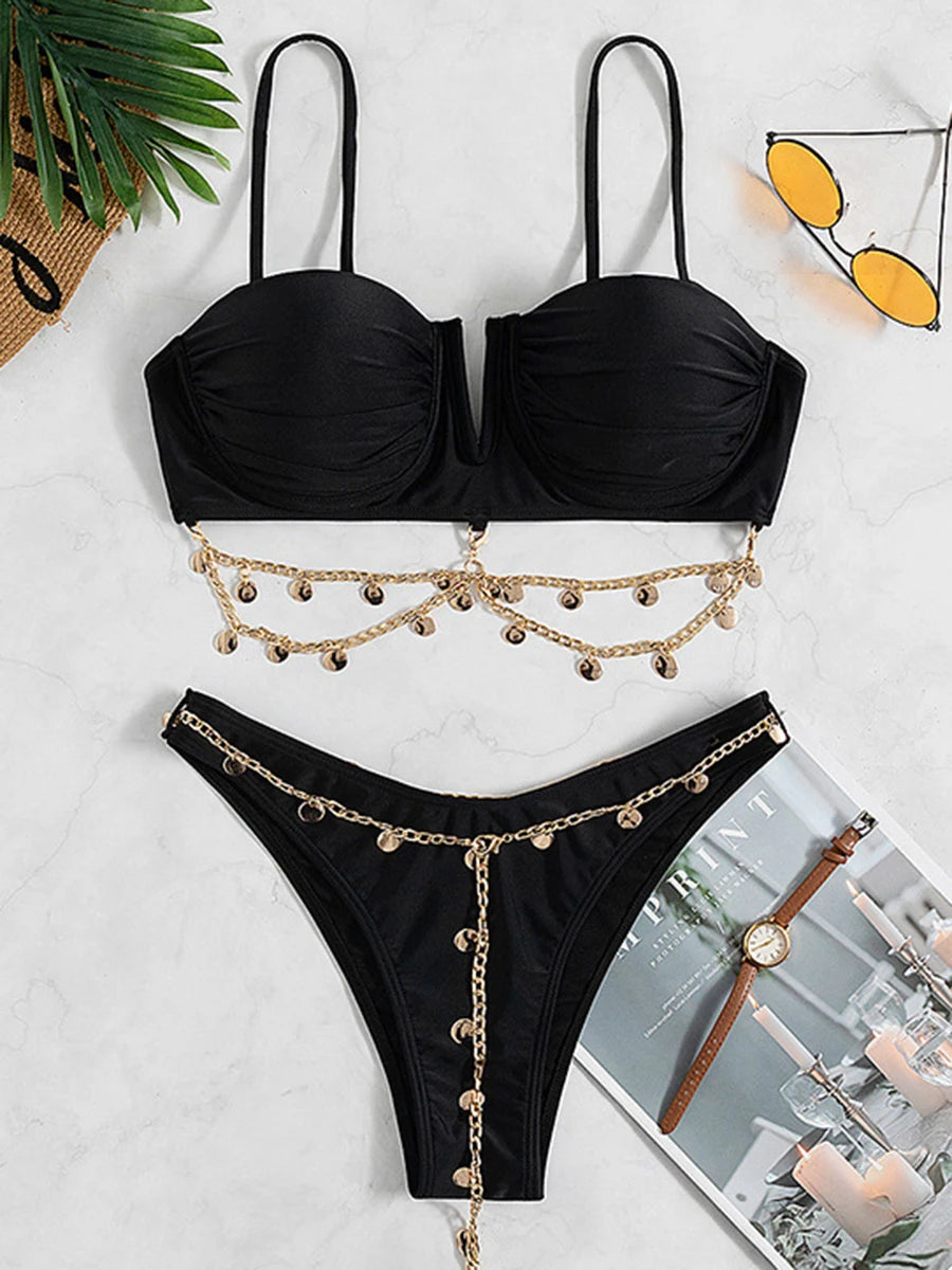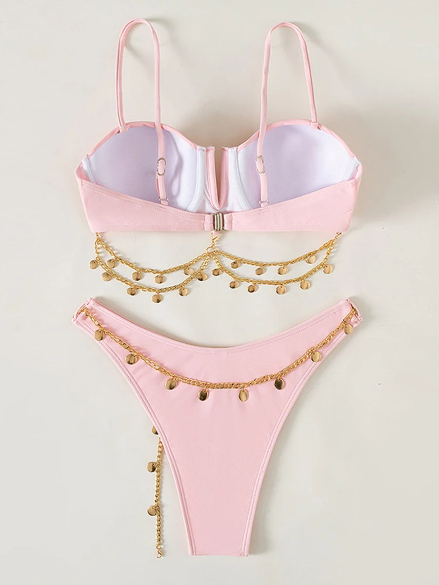 Experience ultimate comfort and support in our Only In My Mind Bikini made from a luxurious blend of spandex and polyester. The solid pattern and underwire design provide a perfect fit for all-day wear. Feel confident and stylish with this must-have bikini!