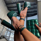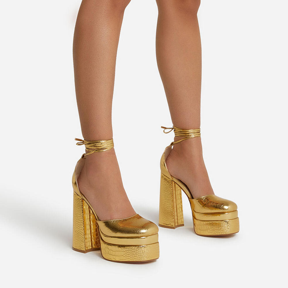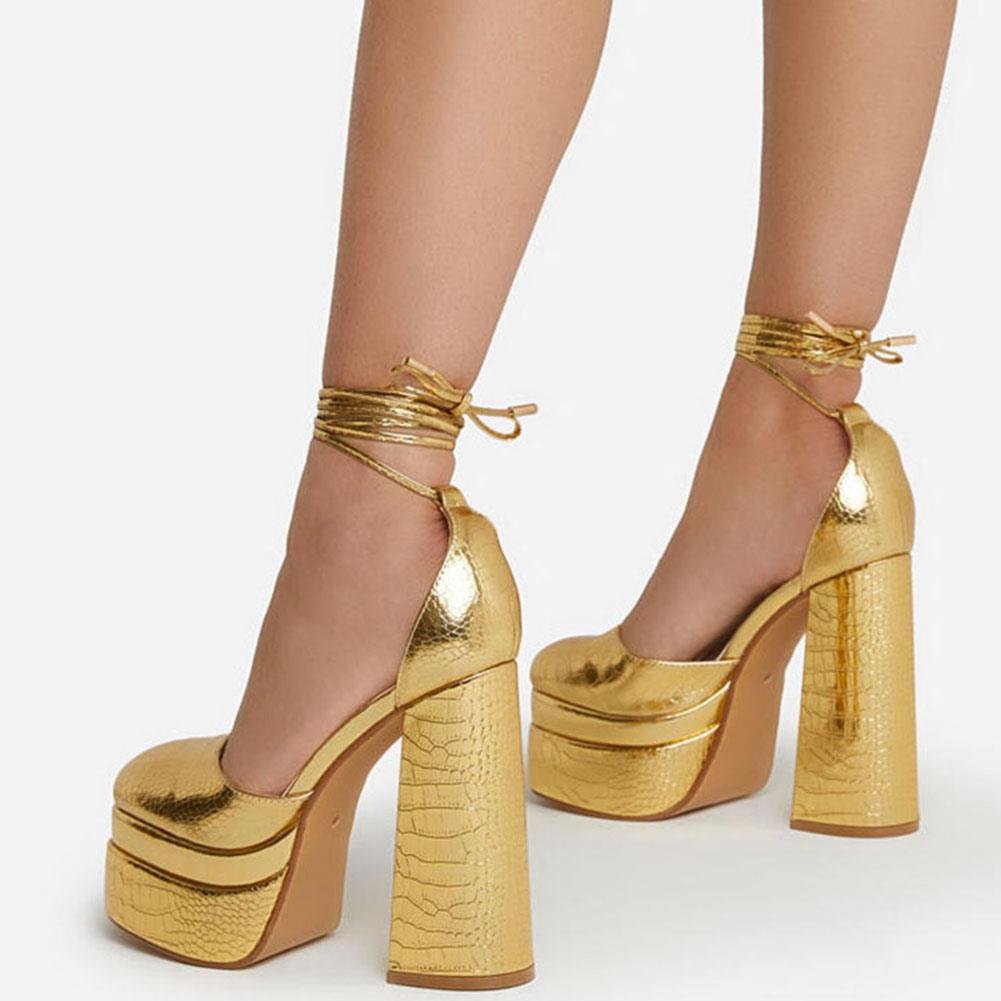 These shoes are a hot new trend for the season. These chunky heeled shoes are perfect for all your summer adventures. They have a snakeskin pattern and ankle lace strap for extra support. These shoes come in 5 different colors and are perfect for dressing up or down.