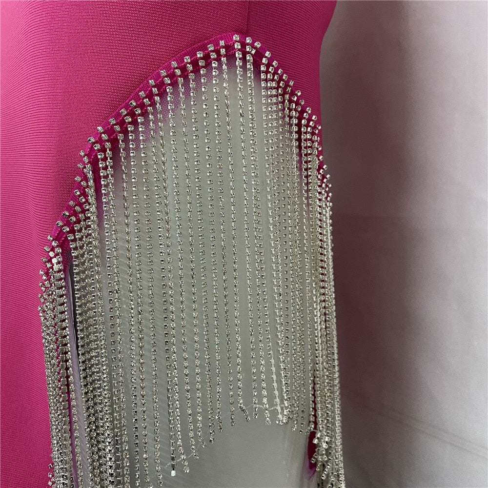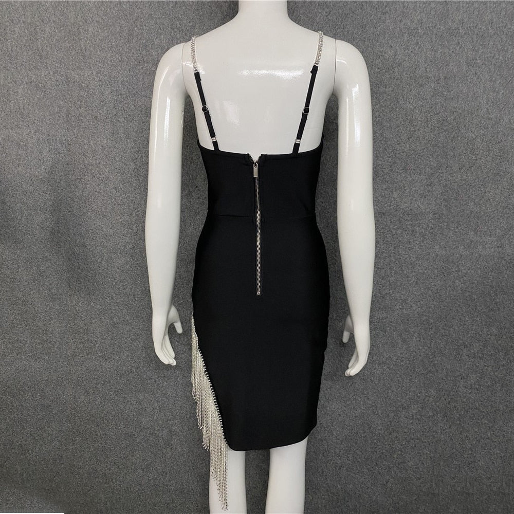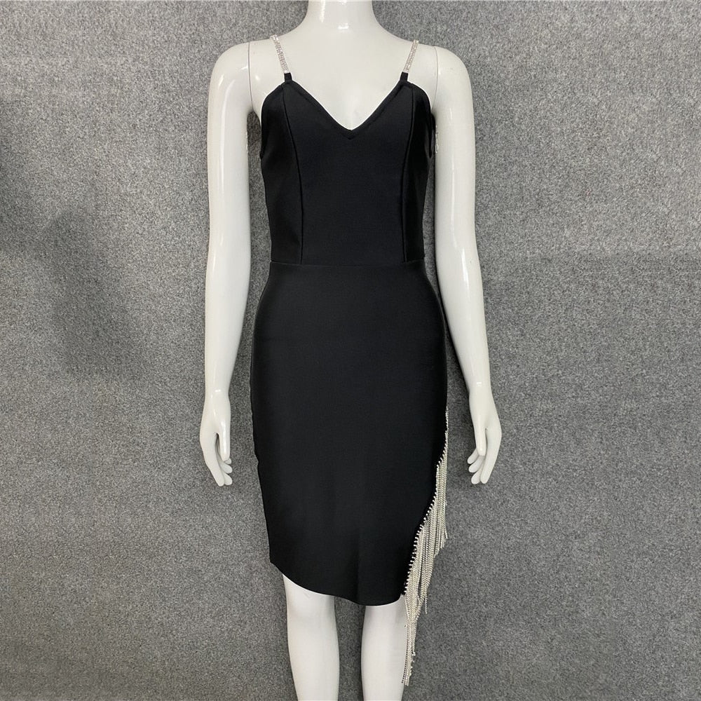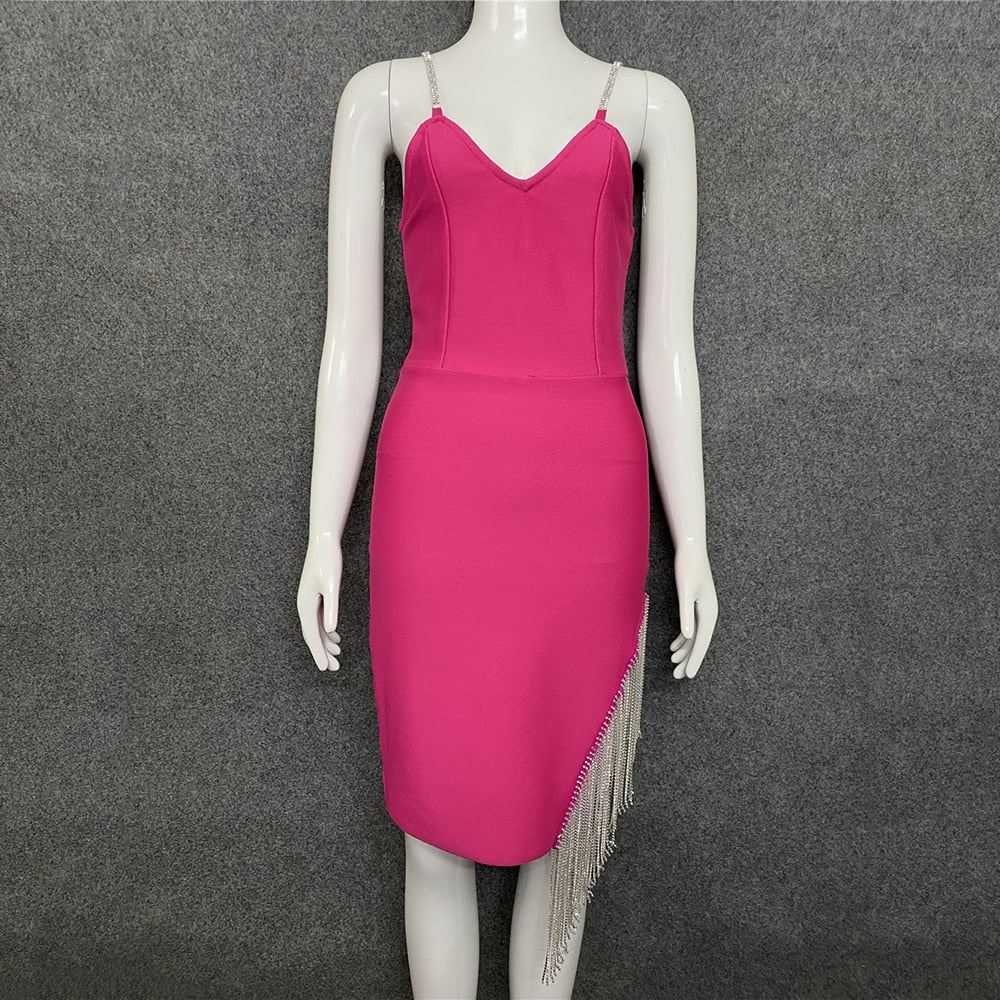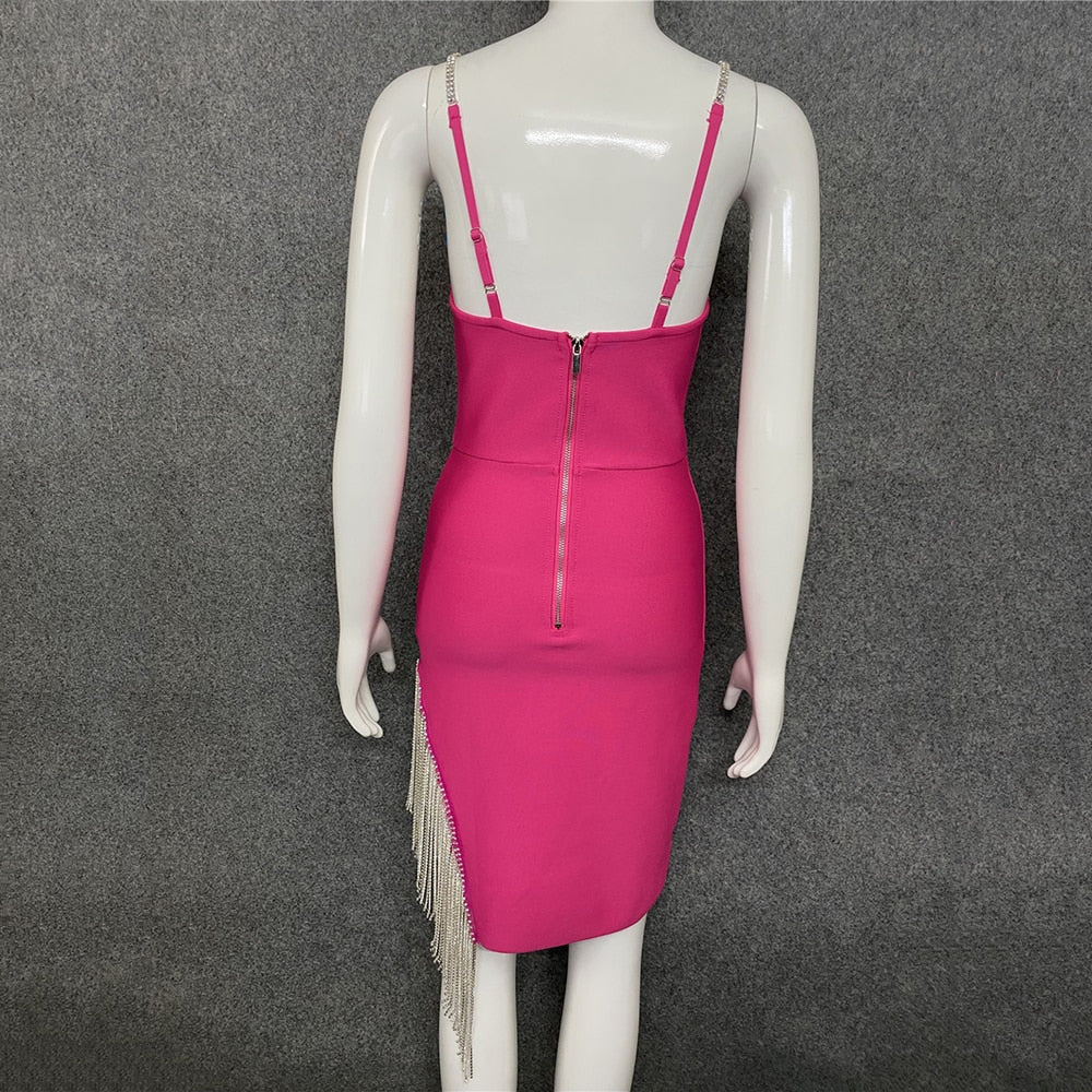 Be the center of attention in a style that's sure to make an impression. With a chain strap, these women's dresses are ideal for any occasion. A tasseled chain strap at the back adds a touch of class. The midi length is stylish and flattering, making this versatile piece a must-have in any wardrobe.