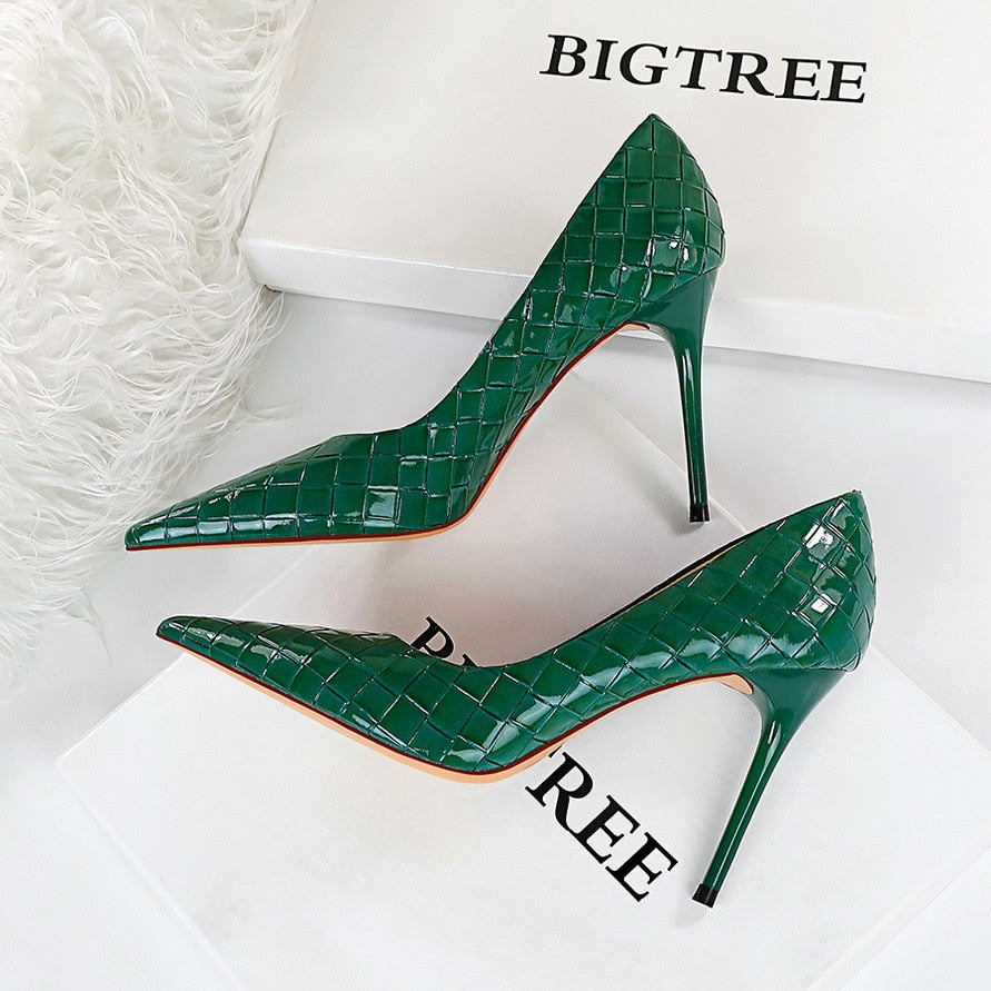 This gorgeous pointy toe stiletto is a stylish and practical option for any wardrobe. It's a modern and elegant design that is sure to make a statement. The geometric pattern adds a unique and edgy twist to the classic style. T