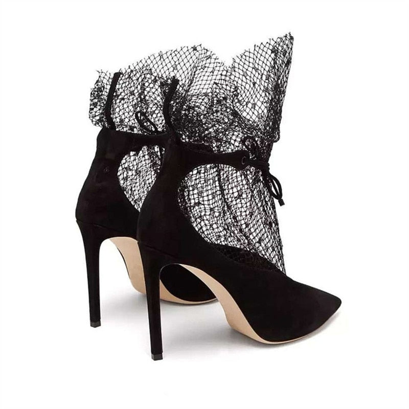Stiletto en punta con decoración de rejilla y cierre de cuerda
