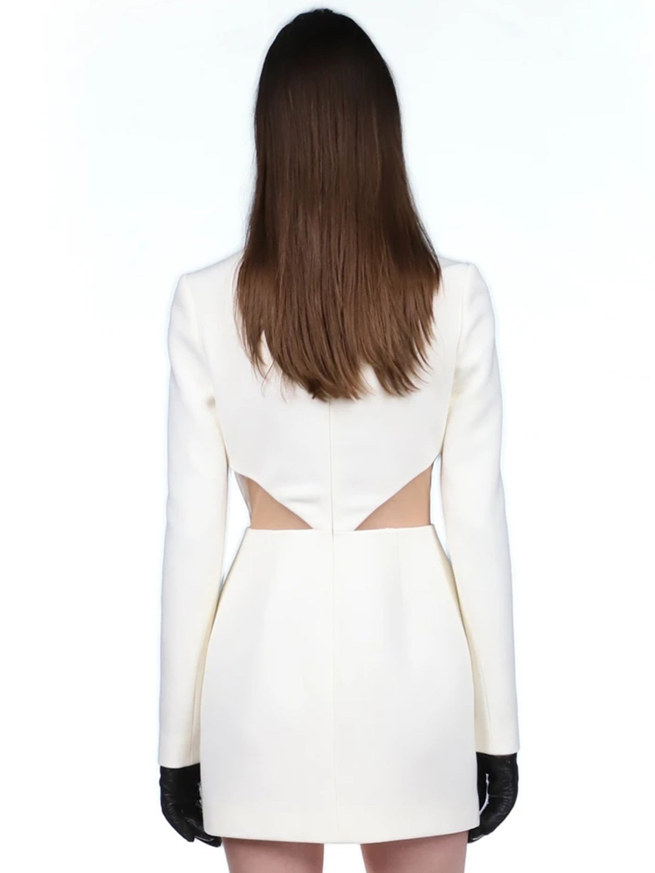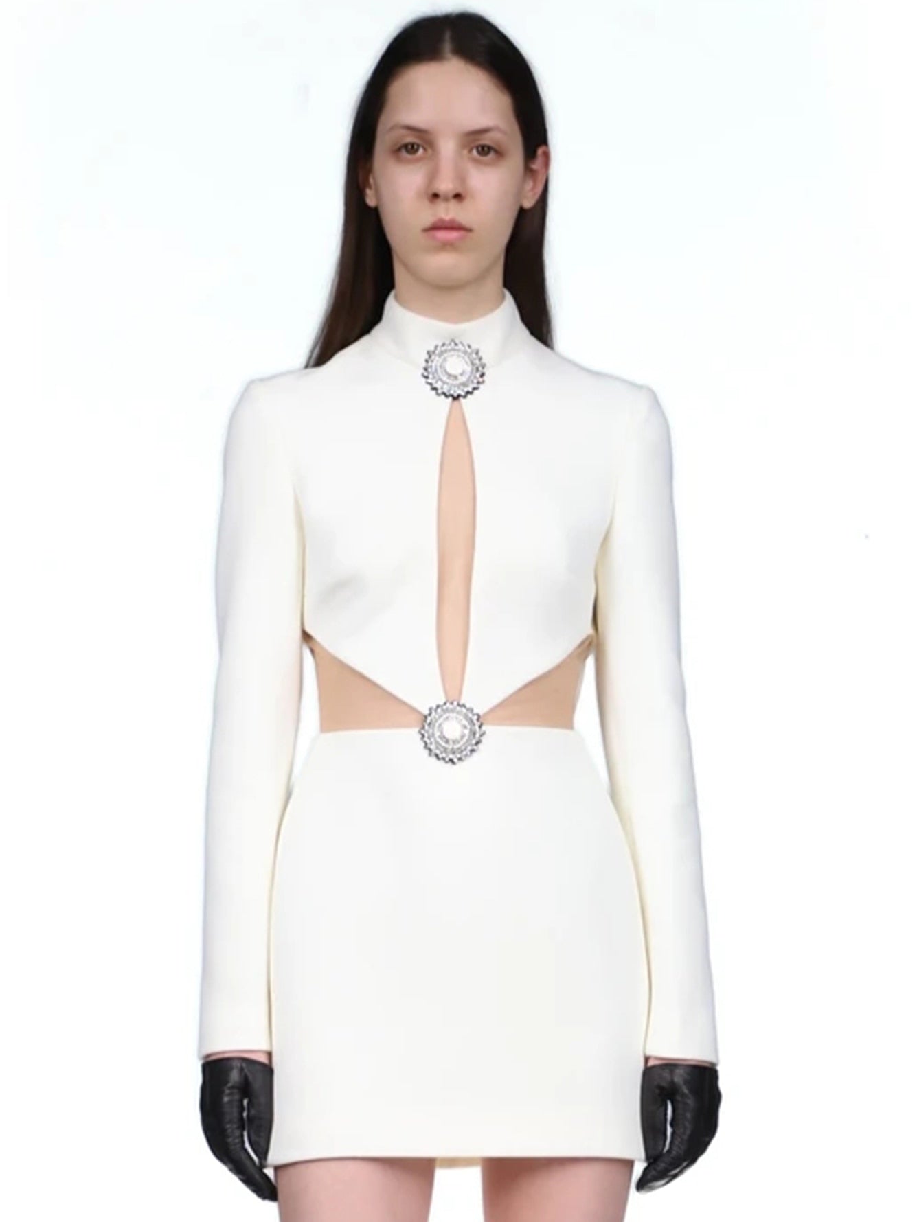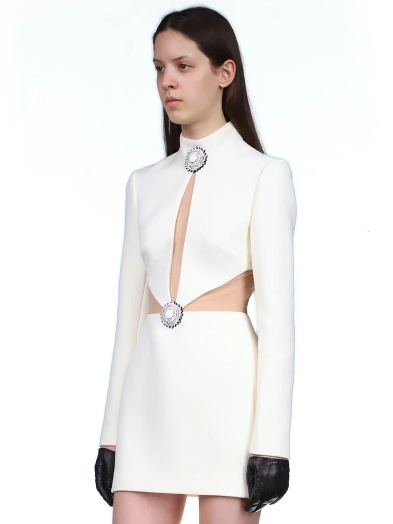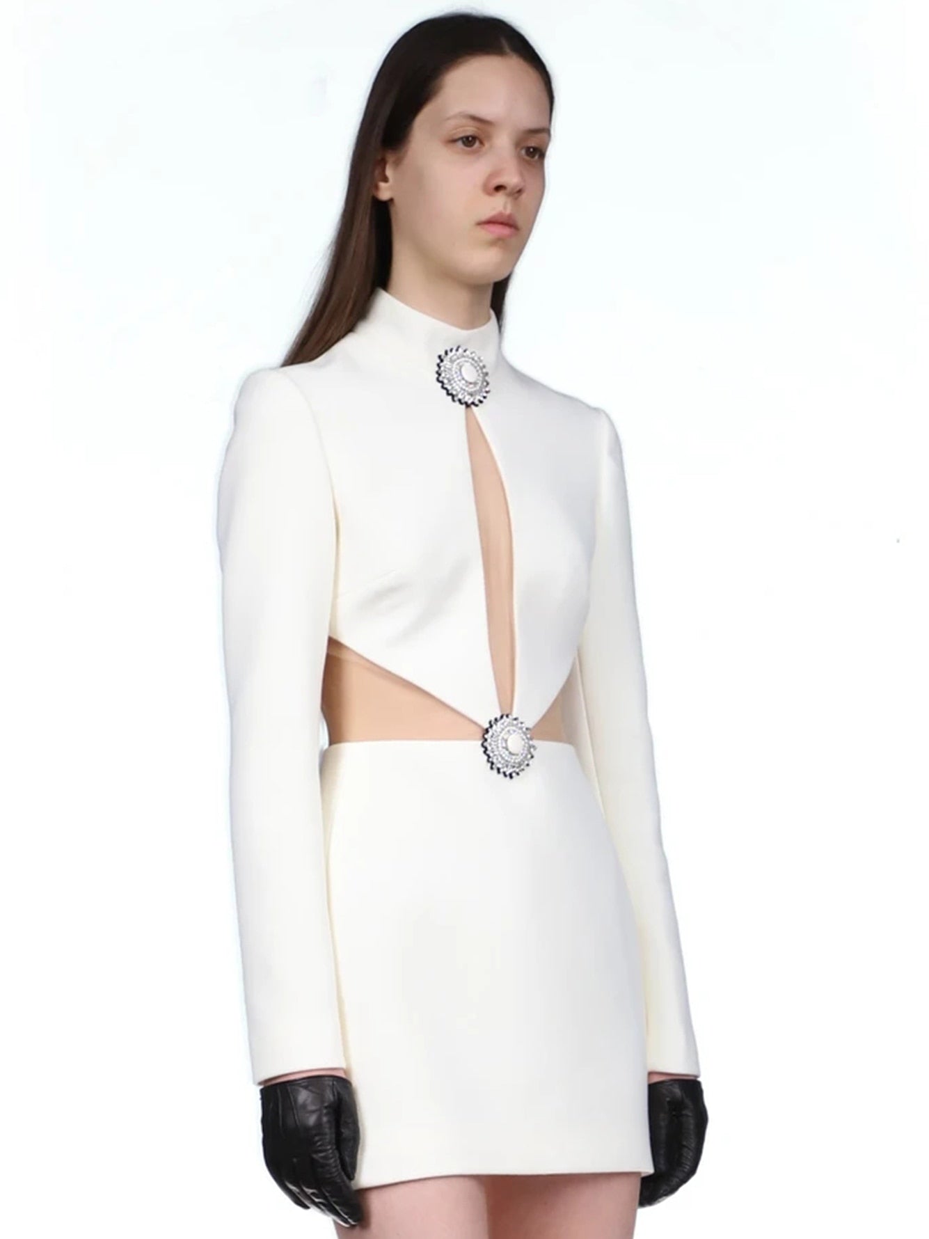 Enjoy this feminine and fashionable look with a high o-neckline. A solid white color creates an elegant look that is sure to turn heads. This simple dress is the perfect choice for any formal occasion.