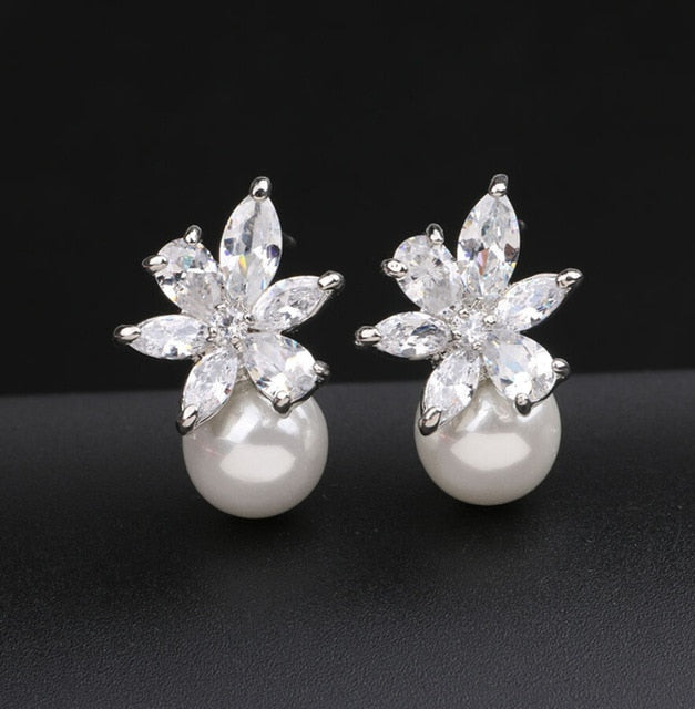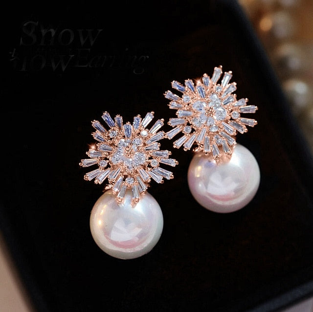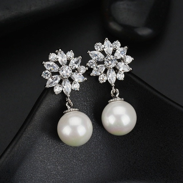<transcy>Pendientes austriacos de perlas de imitación con flores de nieve y circonitas nupciales</transcy>