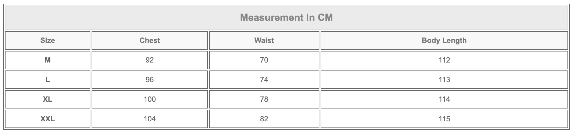 Ex: If you wear S in US Size, it is better if You Choose L in the Asian Size. Details Measurement in cm.
