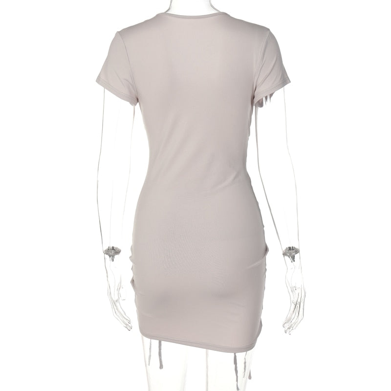 These stylish women's dresses are amazing. They have a modern ruching detail to create a figure-flattering silhouette. You will love the cut, the fit, and the feel. These dresses are great for any occasion. This nude color and style will fit in with anything she wears. This is a dress she will love for years to come.