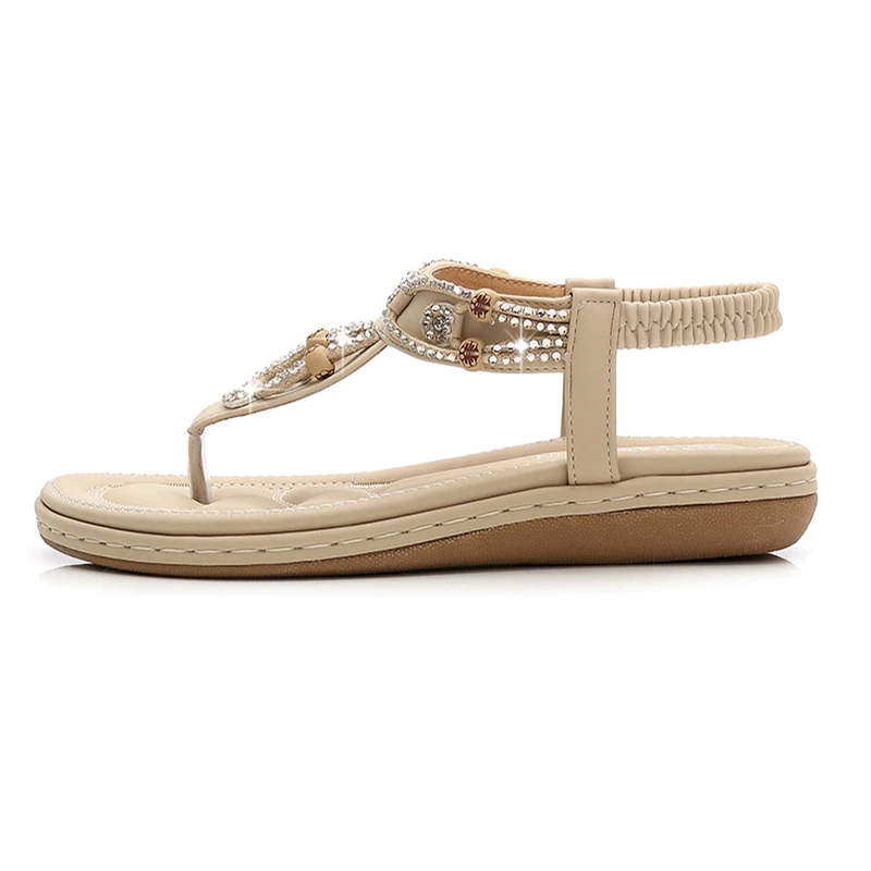 <transcy>Sandalia plana de cuero PU con diamantes de imitación Bling</transcy>