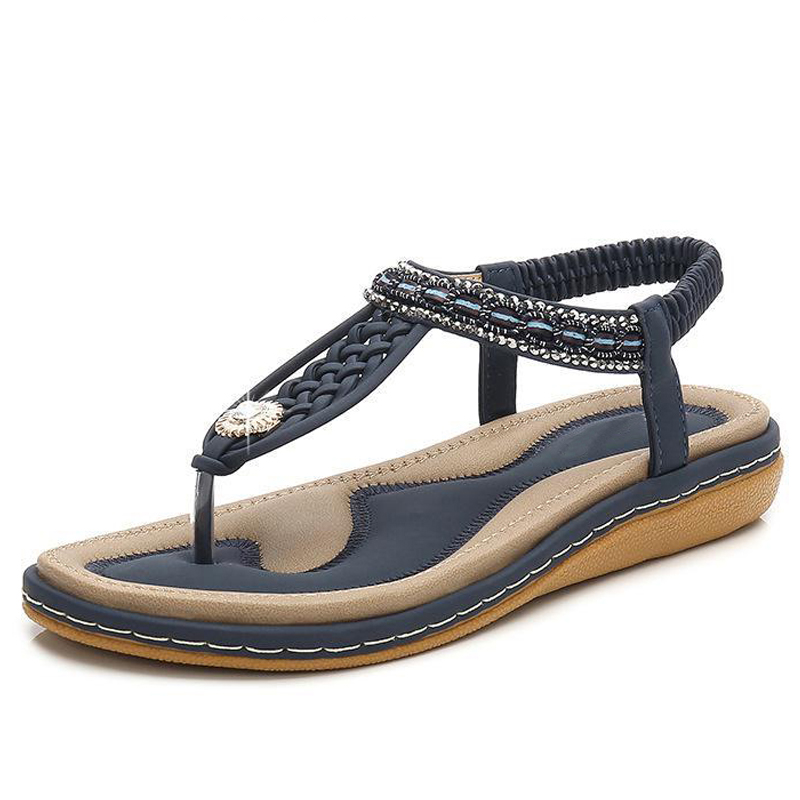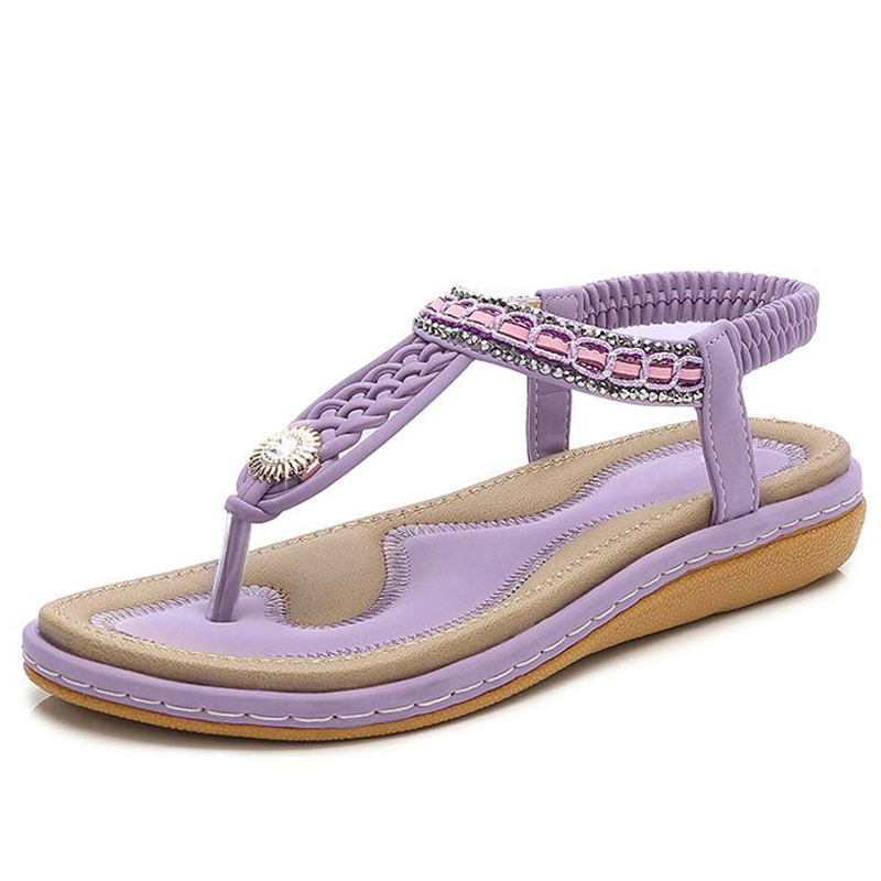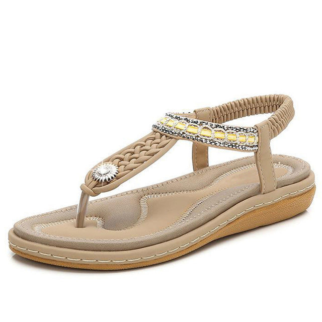 Sandalias con tiras traseras decorativas de cristal de cuero PU