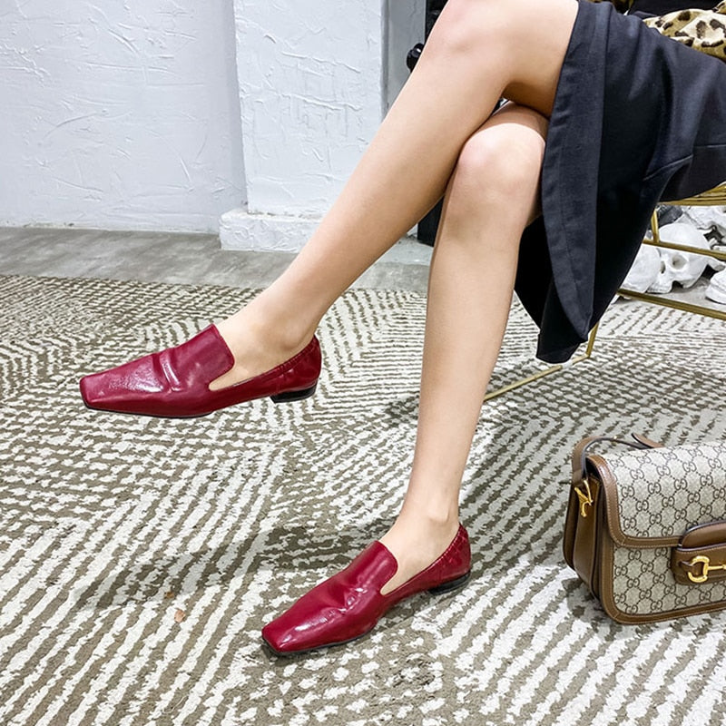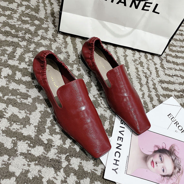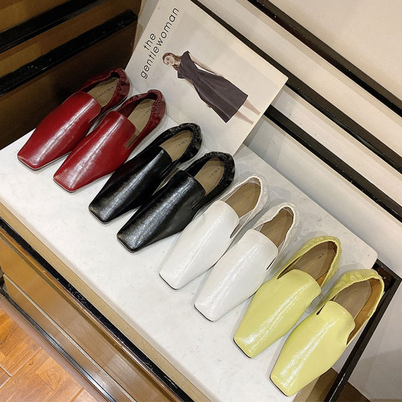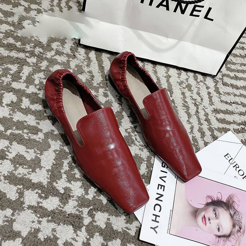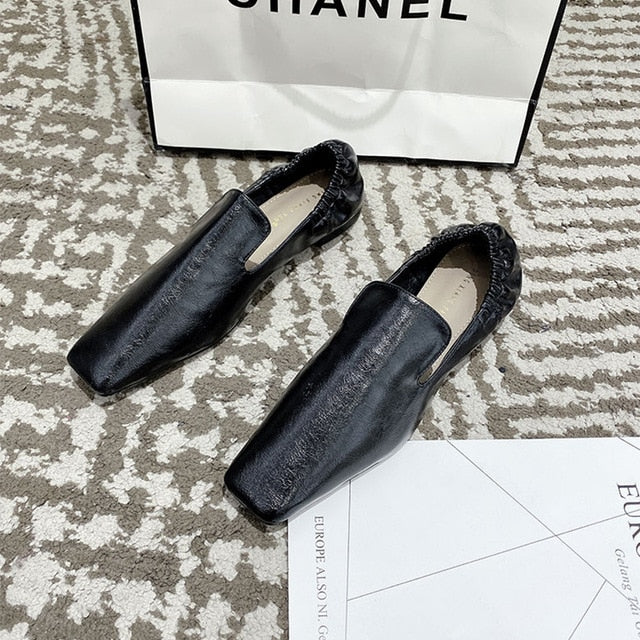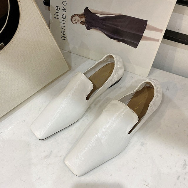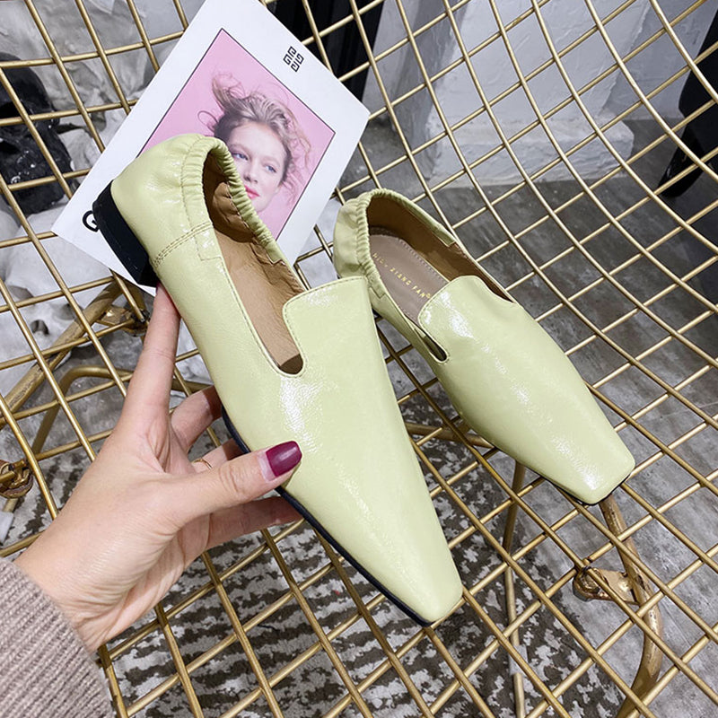 <transcy>Zapatos planos de mujer con punta cuadrada y espalda elástica sin cordones</transcy>