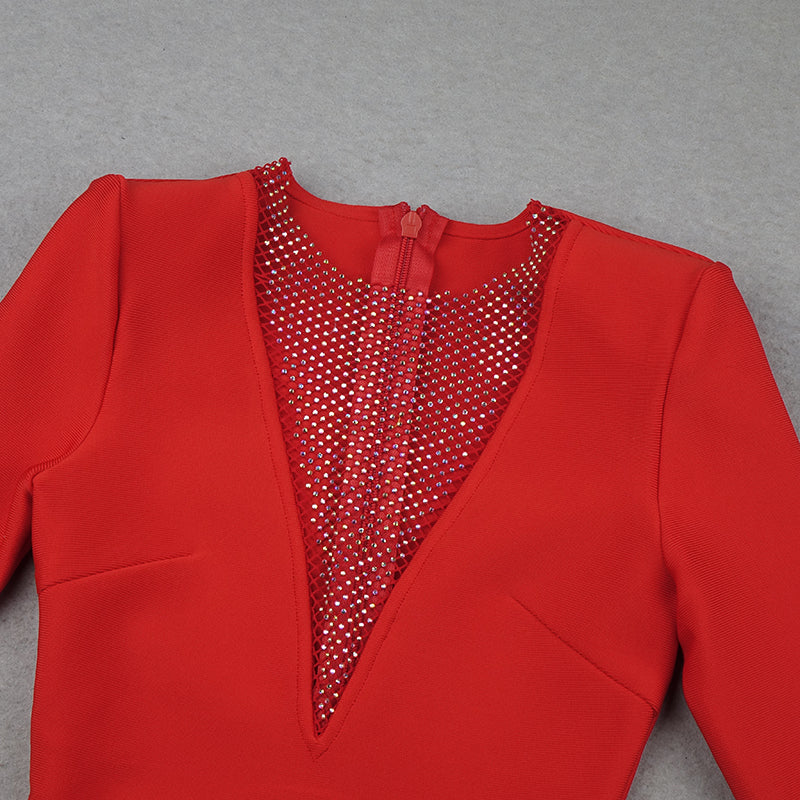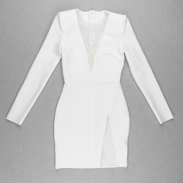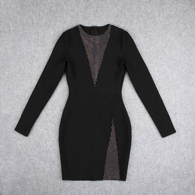 Minivestido ajustado de manga larga con apliques de diamantes de imitación