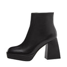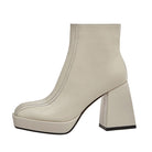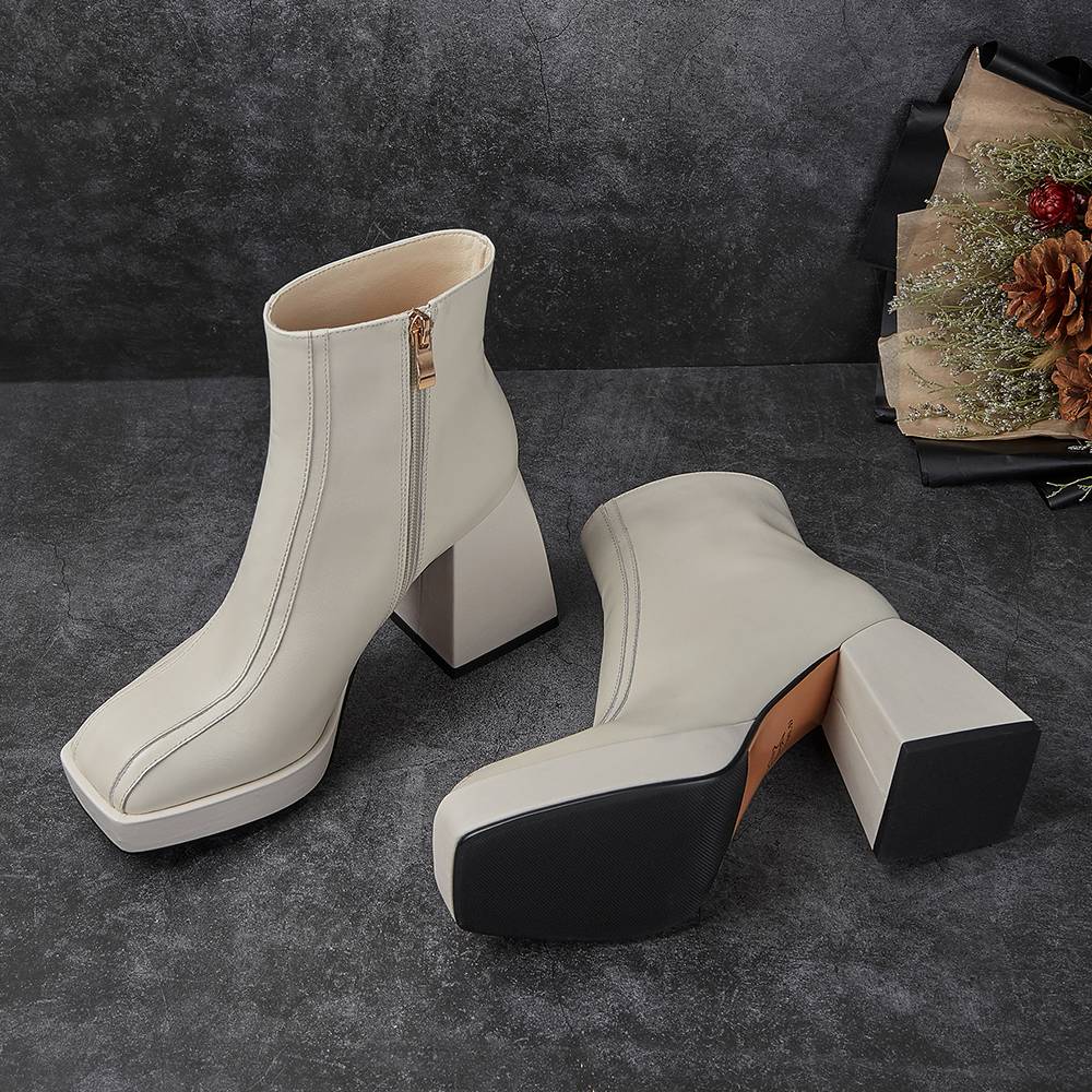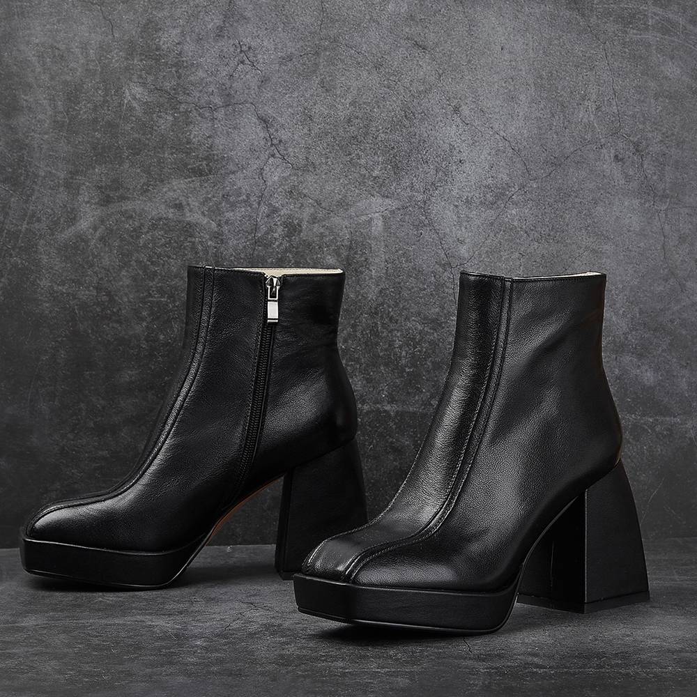 Botines de punta cuadrada con tacones únicos y cierre de cremallera hechos de material de cuero de vaca