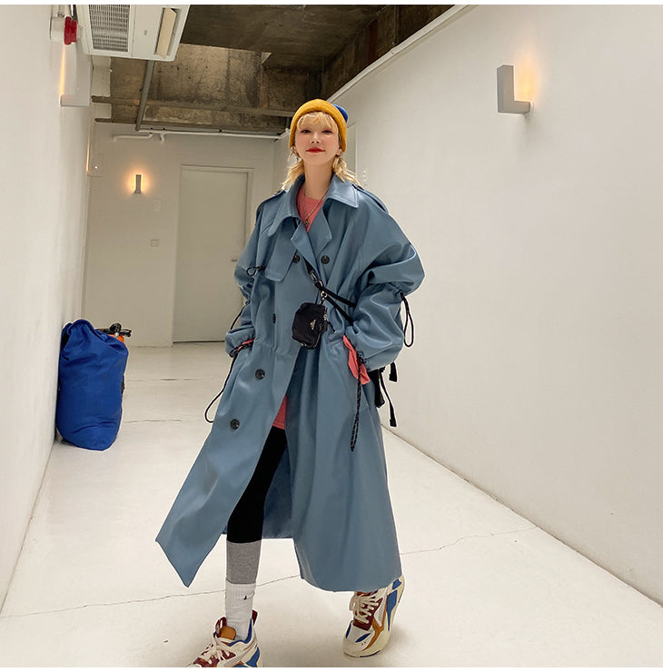 Stylish and easy to wear, these faux leather trench coats are a new favorite for this season. The double-breasted design will help you stay warm on those cooler days. The drawstring waist adds a touch of subtle sophistication that can be styled up or down.