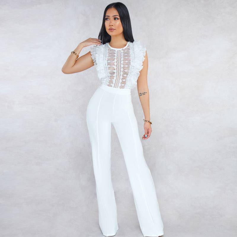 Mono sin mangas de poliéster spandex con top de encaje transparente