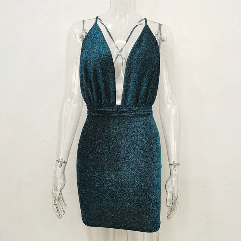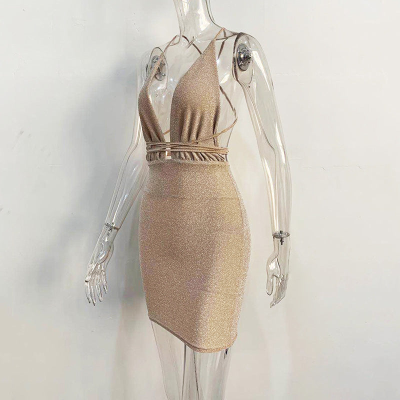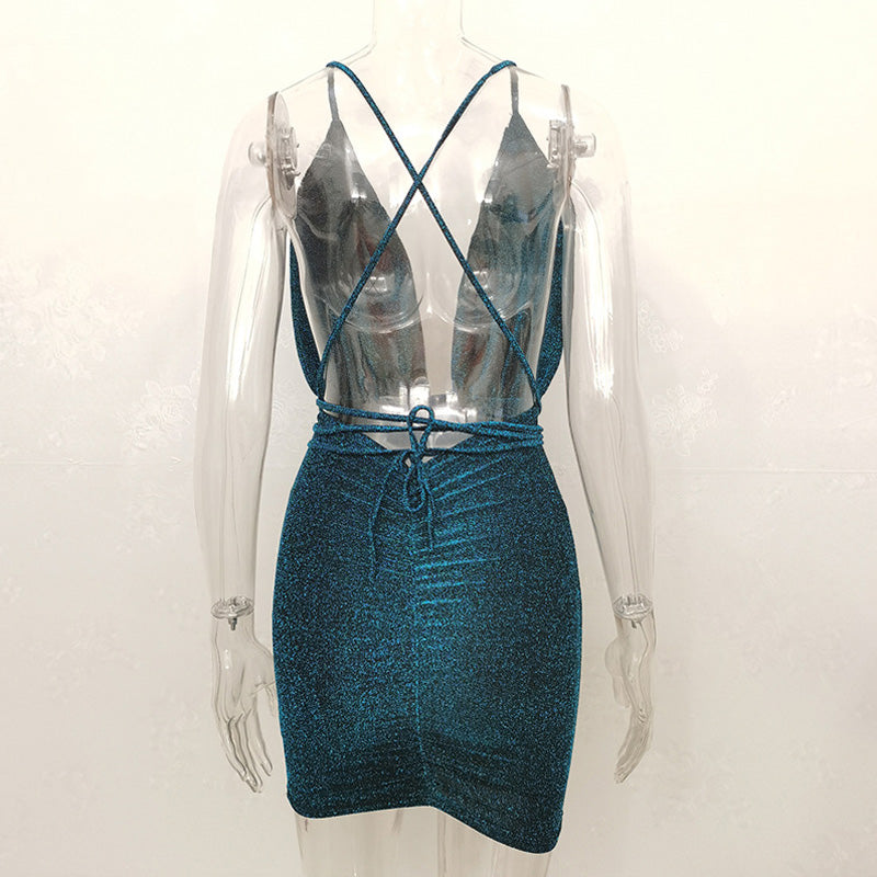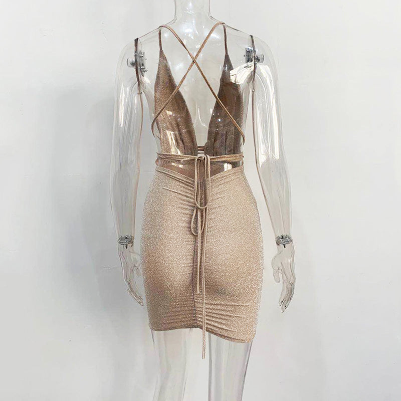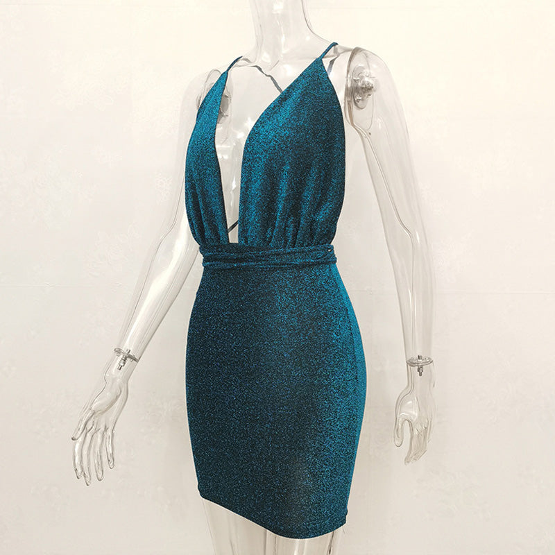 Minivestido de poliéster spandex con escote en V pronunciado y cierre de encaje