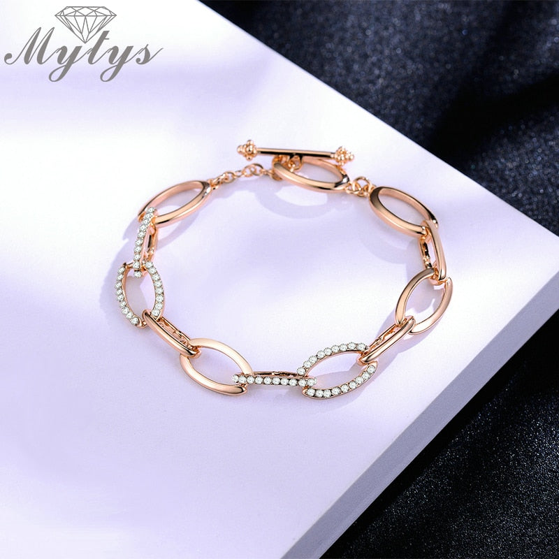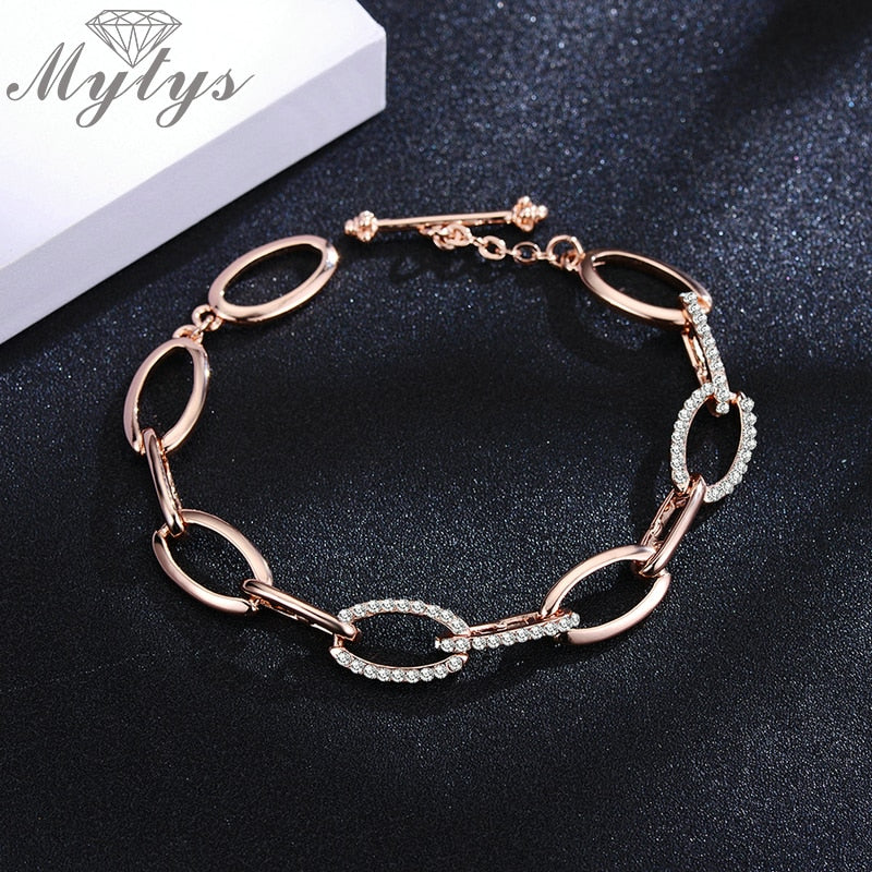 <transcy>Pulseras de cadena de eslabones de oro rosa Pulseras de cristal con engaste invisible</transcy>