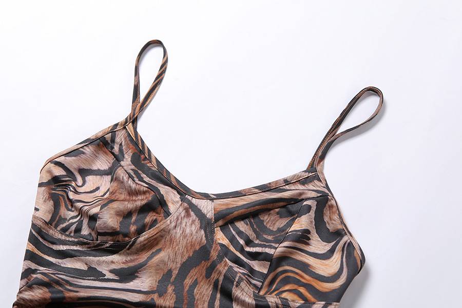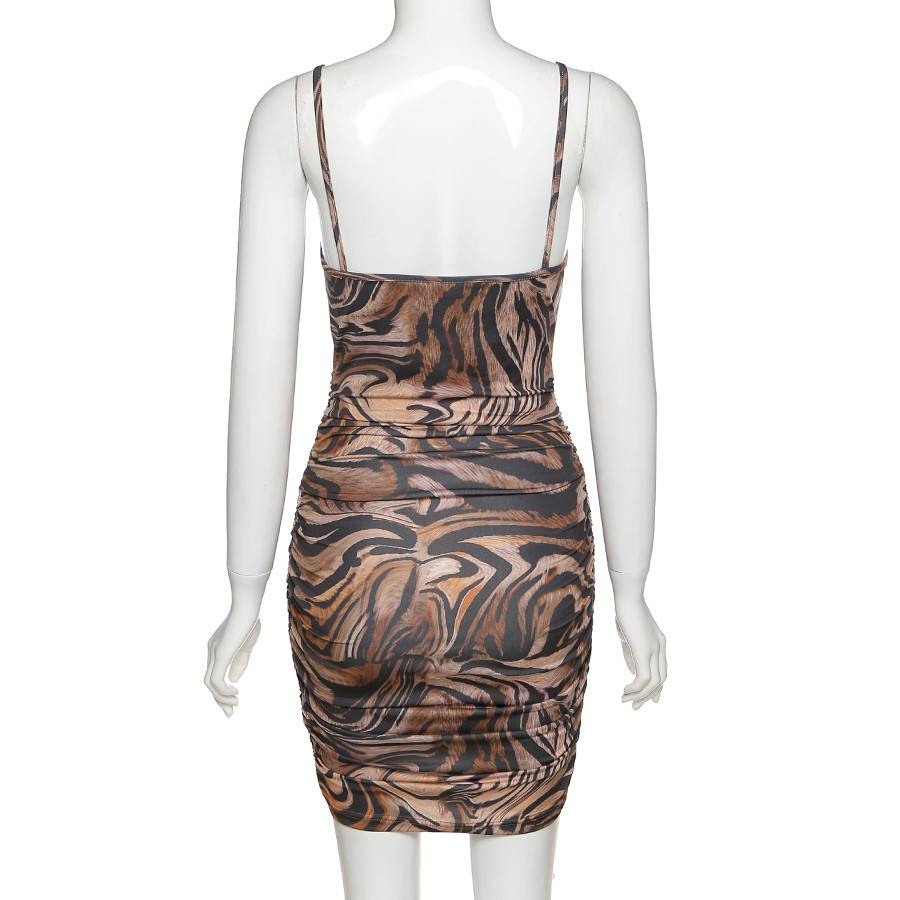 Show off your curves in this sexy and stylish animal pattern mini dress. This stylish dress features a sharp, v neckline that also creates a sexy décolleté. The spaghetti straps make this a great choice for any summer outfit. Pair this with sandals or flip-flops for a sporty look. This versatile outfit can be worn to a party or night out.