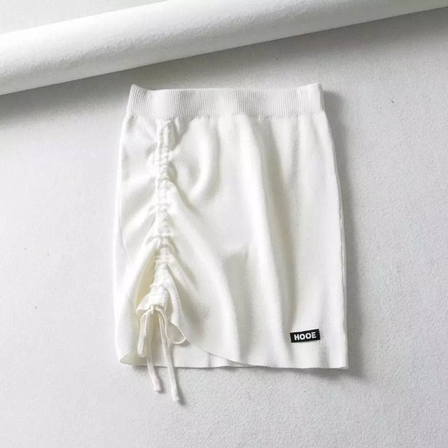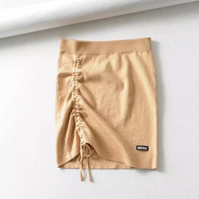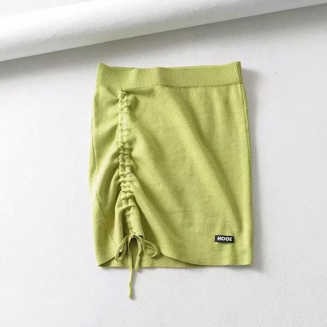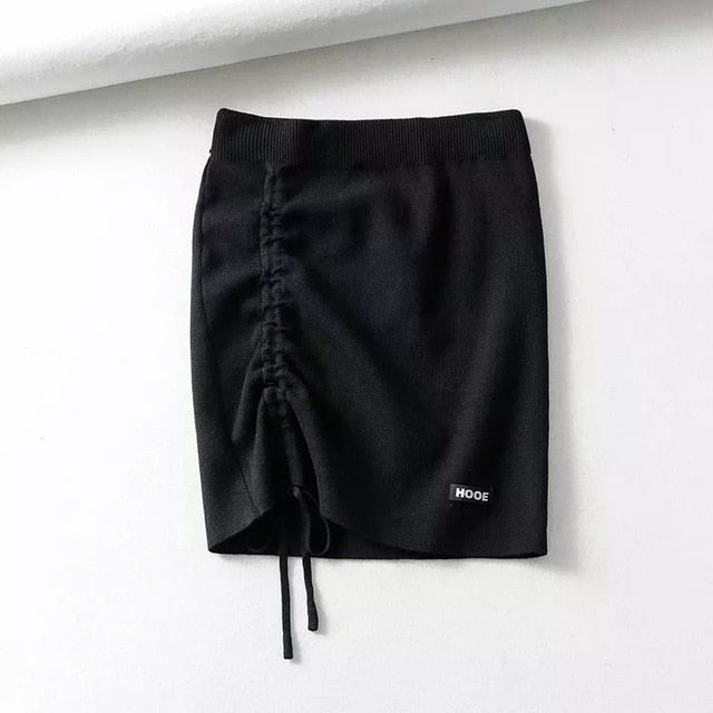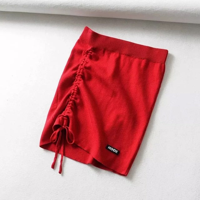 Minifalda de punto de color liso con decoración de cordón y material de algodón spandex