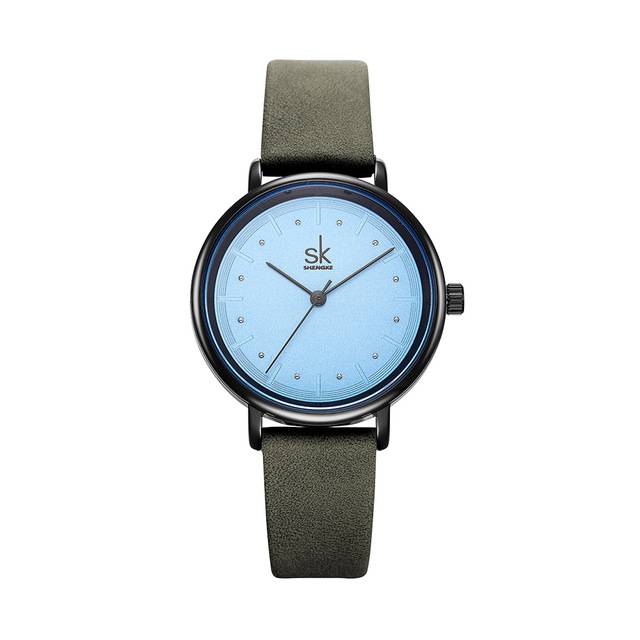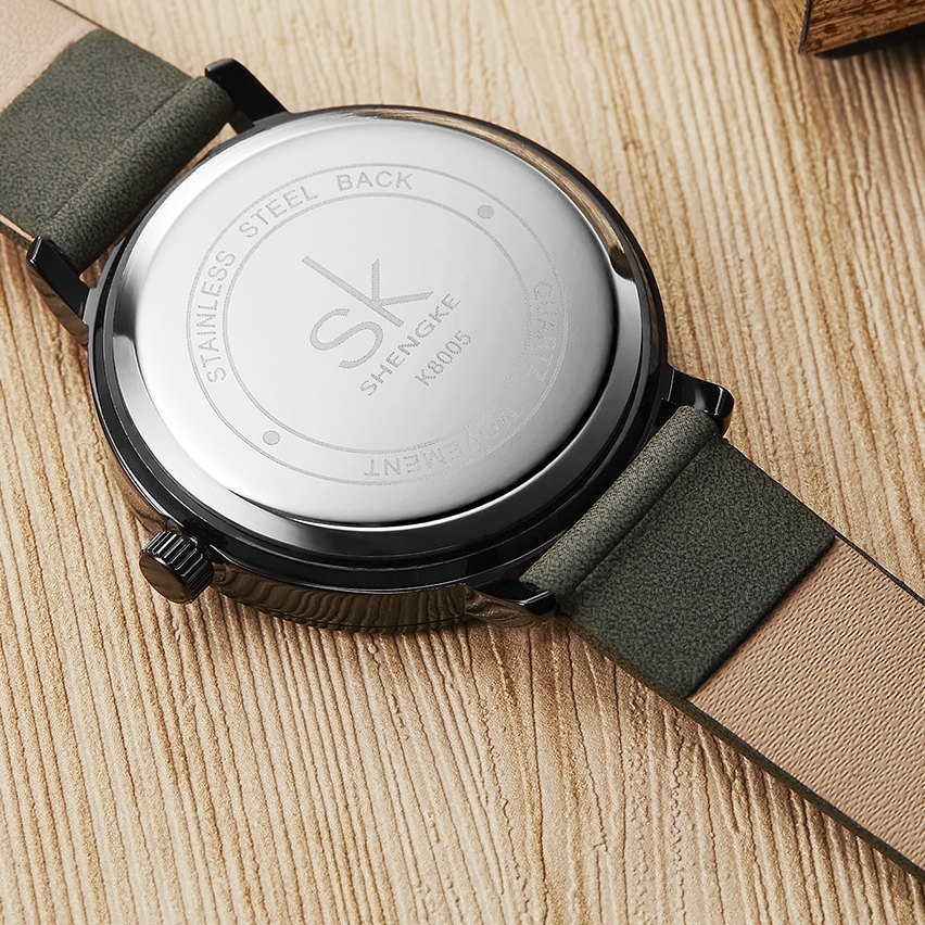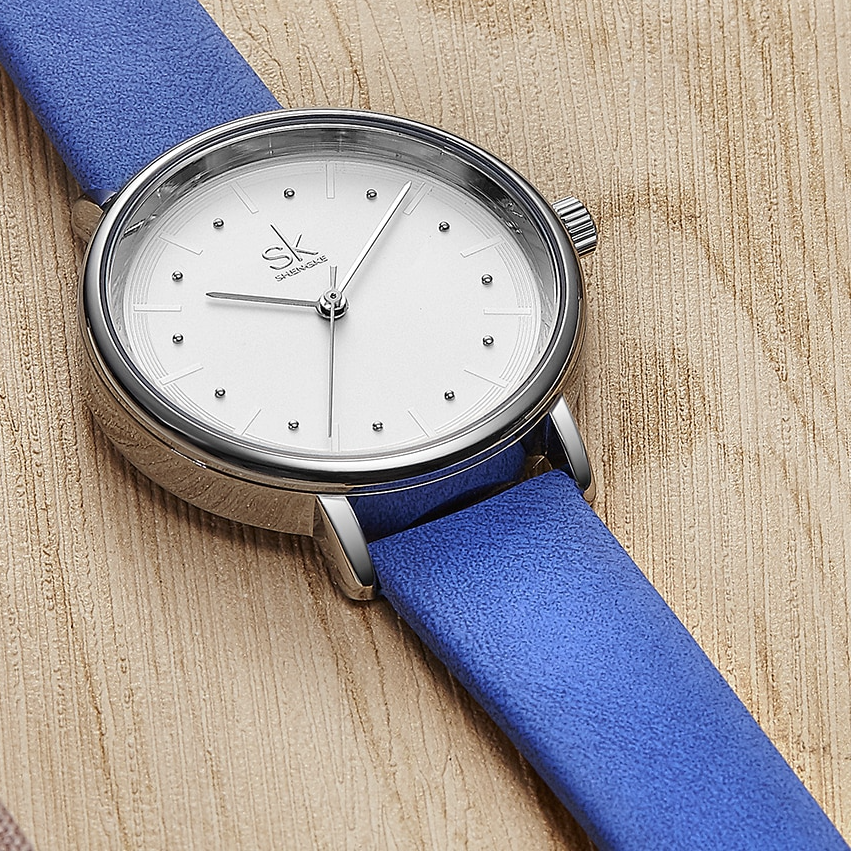 Reloj redondo minimalista de acero inoxidable con movimiento de cuarzo y correa de piel sintética