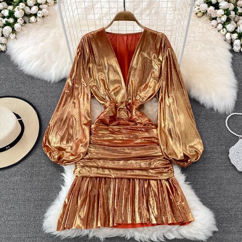 Look your best with this gorgeously feminine mini dress. The lantern long sleeves enhance your figure in the most flattering way. This classic style is the perfect way to kick-start your wardrobe options. The striking v-neckline has a flattering, plunging effect that will make her feel amazing. A variety of color options are available so you can choose the perfect hue to complement her style.