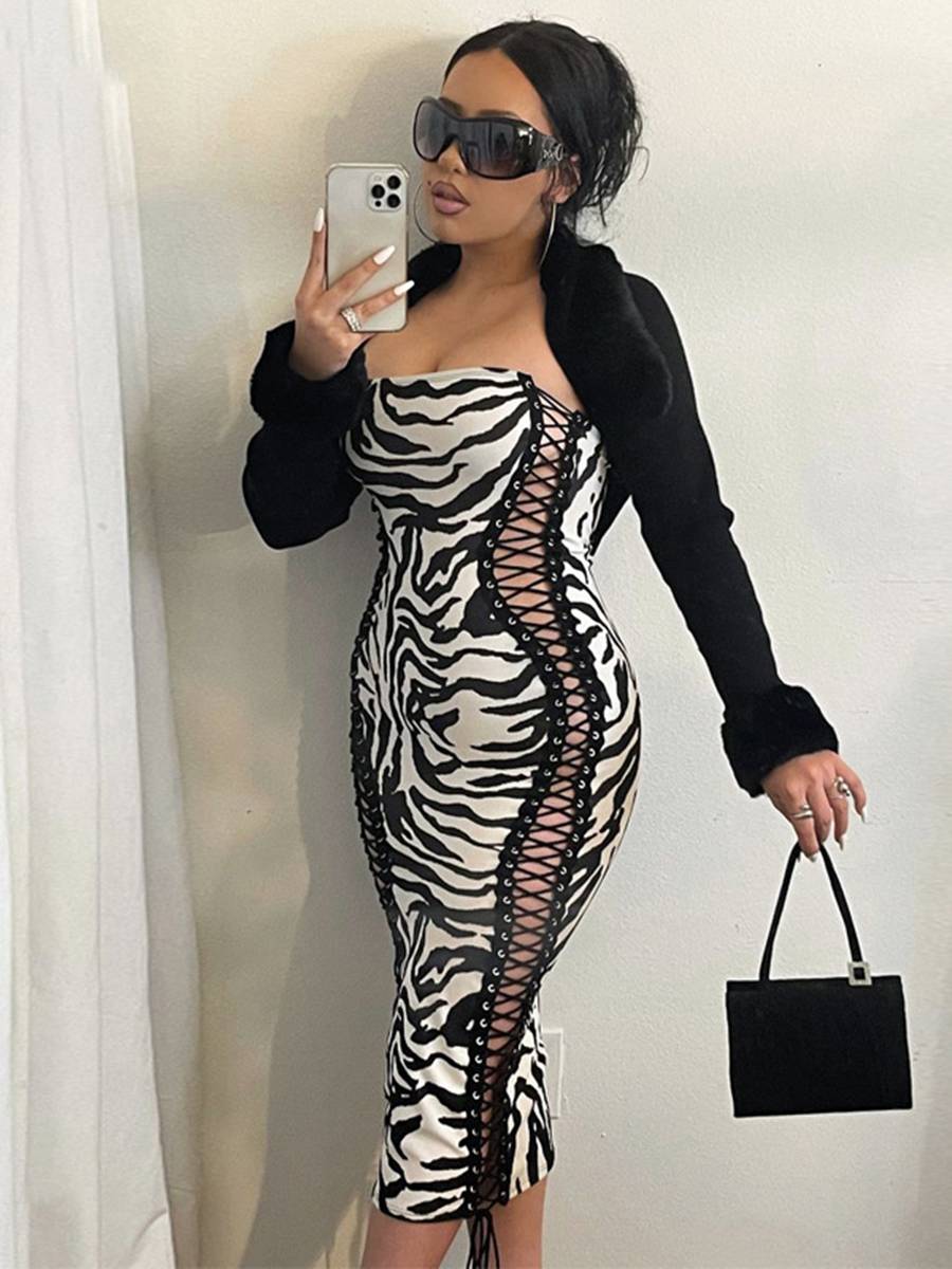 A contemporary and stylish look, you’ll love how versatile this women’s dress is. A contemporary midi-length dress, the strapless design and zebra stripes print pattern adds a feminine touch that is sure to get noticed. Wear it with a pair of sultry stilettos to complete the look. This women’s dress has a figure-flattering design that is sure to turn heads.