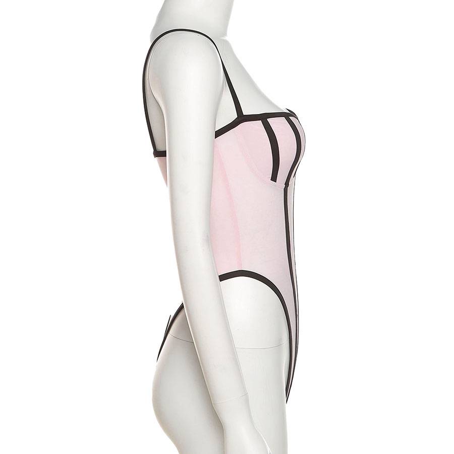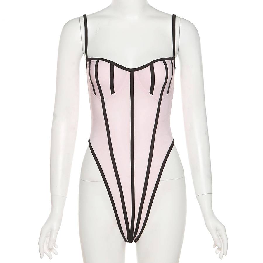 Body sin mangas con estampado de rayas hecho de material de poliéster spandex con tirantes finos