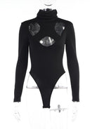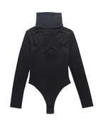 The perfect choice for a trendy and comfortable style, this black bodysuit is a versatile essential in any wardrobe. Made from soft and comfortable polyester, this item has a molded body that provides all-day comfort on the most active of days. The turtle neck and long sleeves ensure you stay protected from the elements. The hollow-out design gives off a modern look that will pair with a wide variety of outfits. Designed to look great by itself or with a variety of other items.
