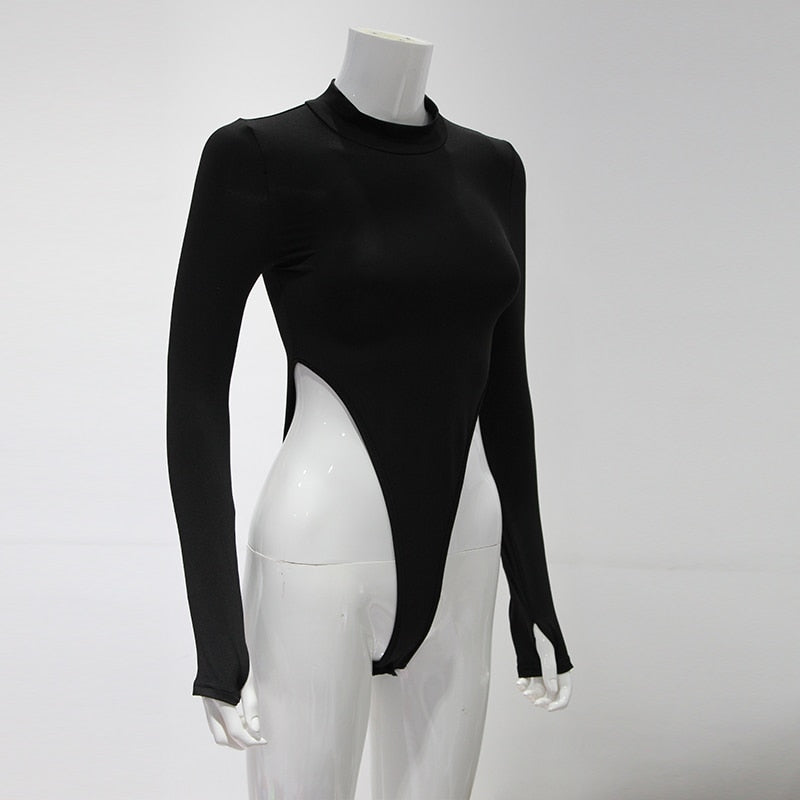 Body de poliéster de algodón sólido con cuello alto y manga larga