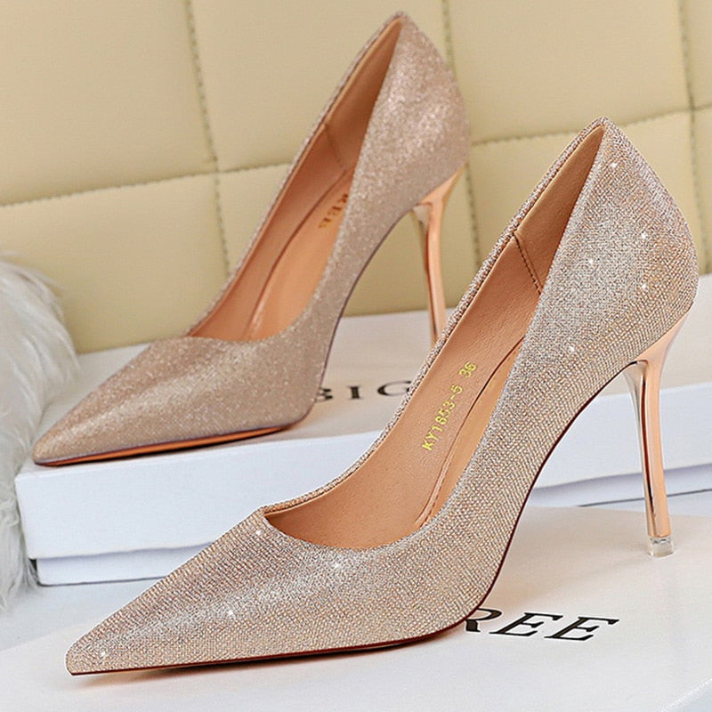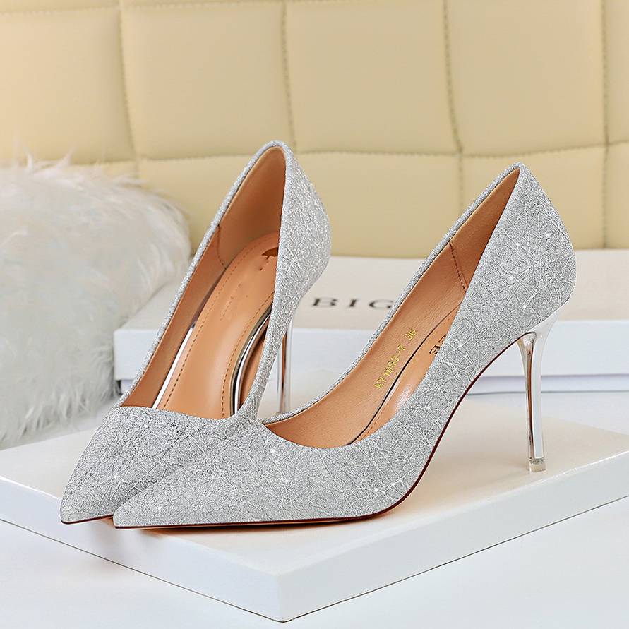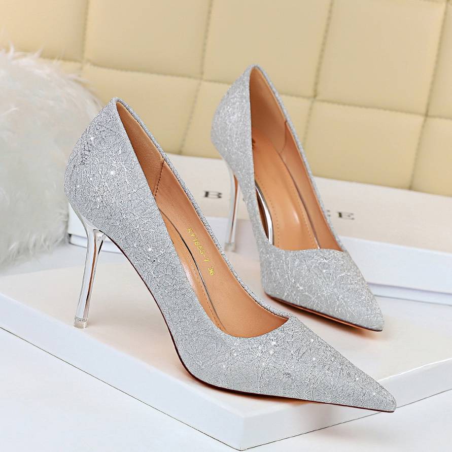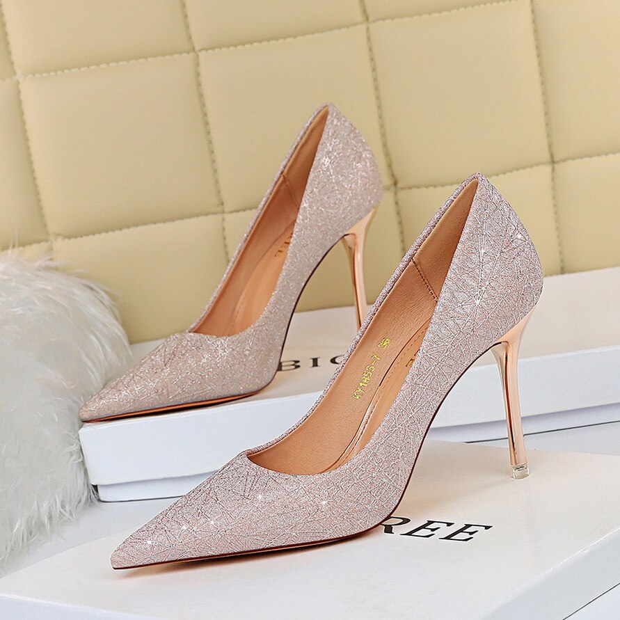 Tela de lentejuelas con purpurina en zapatos Scarpin básicos con punta puntiaguda