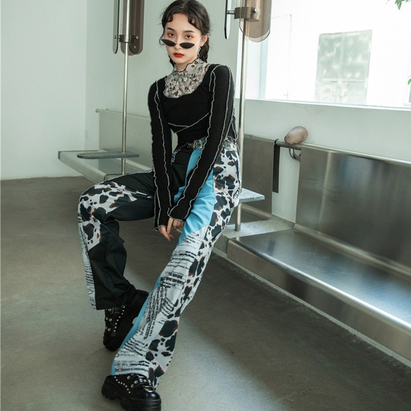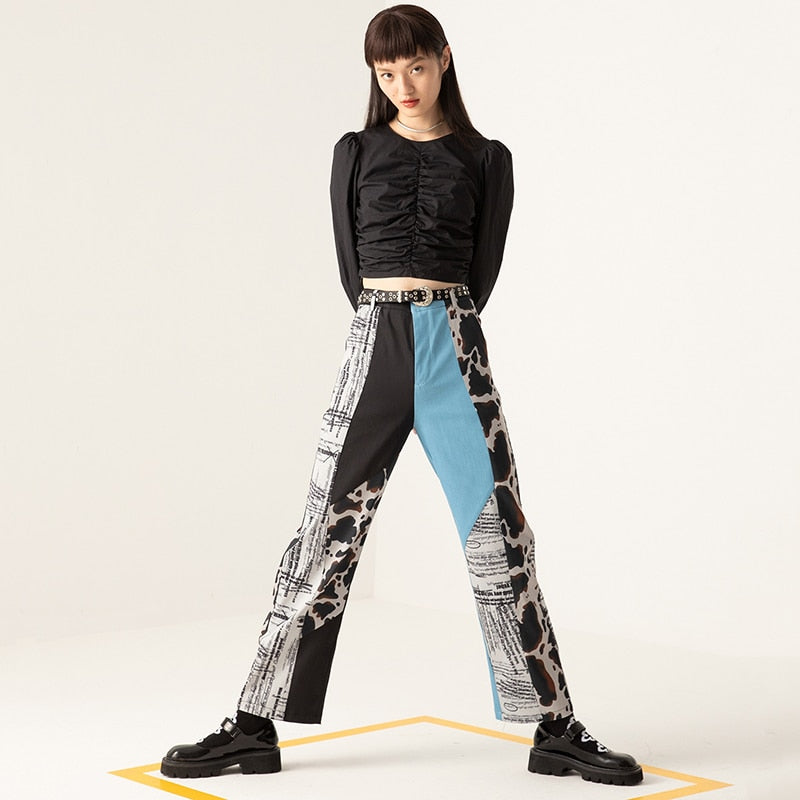 These jeans have a straight fit with a comfortable high waist for a flattering look. These jeans are made of a cotton-polyester blend that's soft and comfortable. The various patterns on these jeans make them look more stylish.