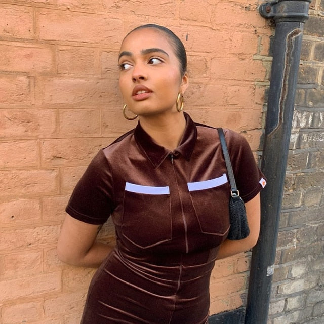 Short Sleeve Jumpsuit Double Pockets with Polyester Spandex Material