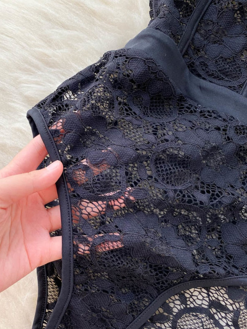 This comfortable, sleek bodysuit features lace and spandex to hug your curves. It's a perfect way to stay comfortable and stylish at the same time. It has spaghetti straps that can be worn in the traditional way or crisscrossed in the back. The empire waistline will give you the perfect amount of coverage.