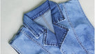 Mameluco de mezclilla sin mangas con cuello vuelto y cierre de botón