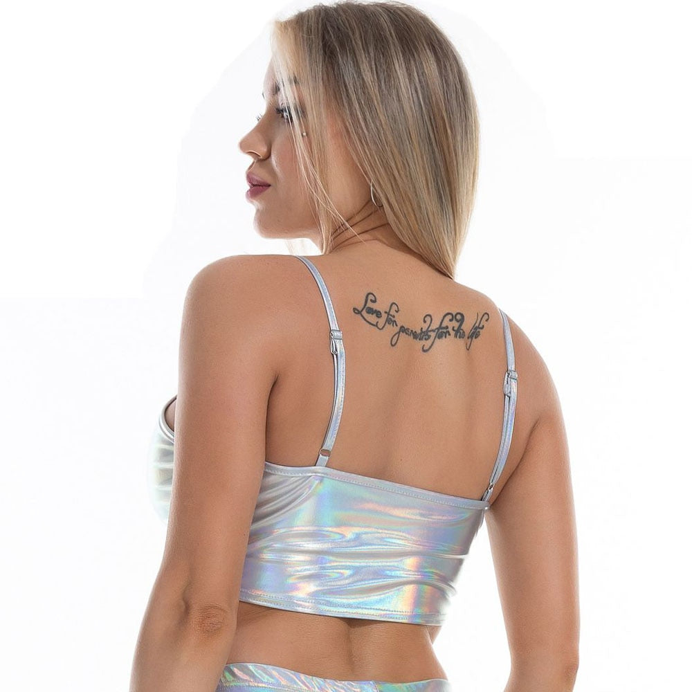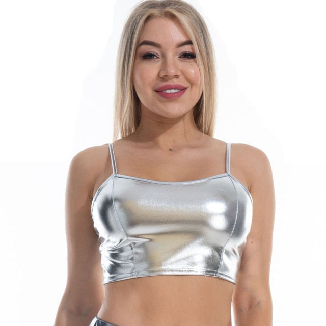 Top camisola recortada de color metalizado con material de poliéster