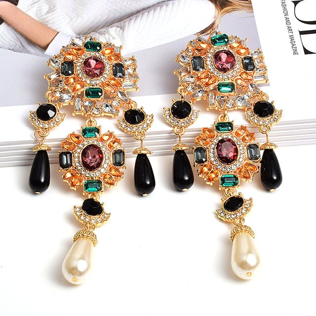 Pendiente colgante con gota de aleación de zinc y cristal de colores