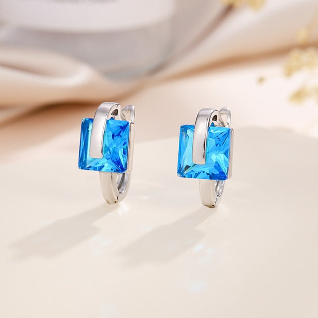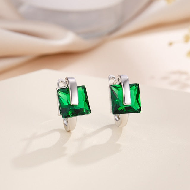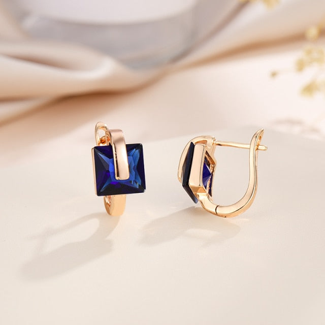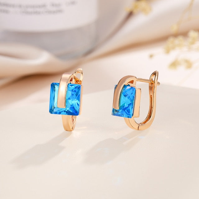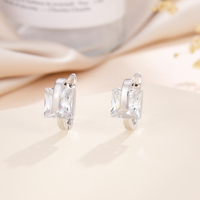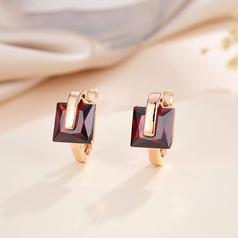 Pendientes de aro de cobre con circonita cuadrada