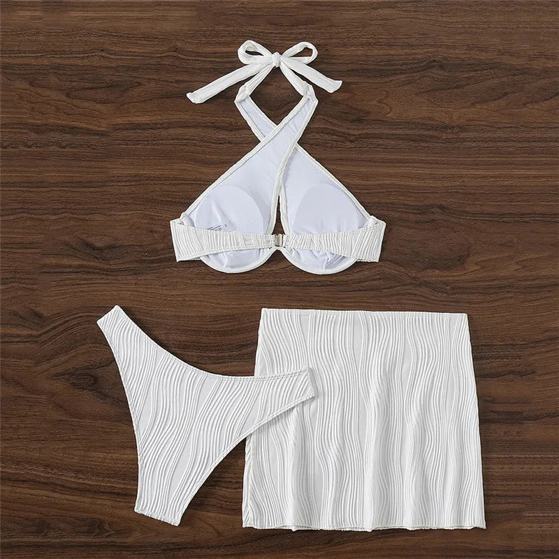 Get ready to rock the beach with our Strut String 3-Piece Bikini! Made with a comfortable blend of polyester and spandex, this solid-colored bikini set is perfect for lounging and swimming. Strut your stuff in style and confidence with this must-have beachwear.