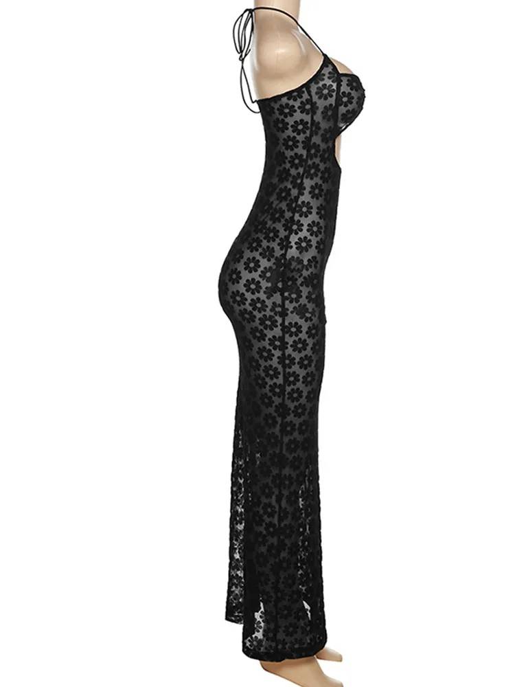 This maxi dress offers timeless style and elegance. Crafted from a blend of spandex and polyester, the dress features a solid design and a delicate hollow-out detail. Perfect for special occasions, this maxi dress will make a luxurious statement.